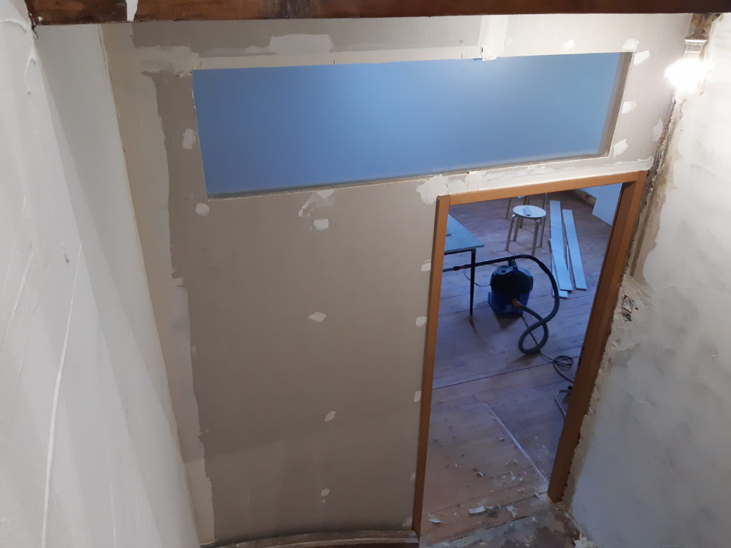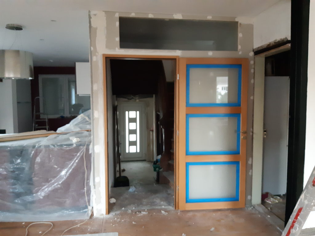 Bande et enduit sur le porte du salon-escalier