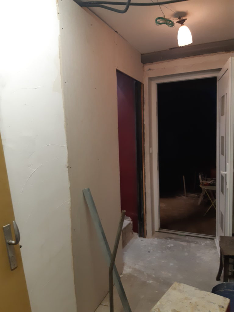 • Placo autour du tuyau de WC qui passe dans la cuisine