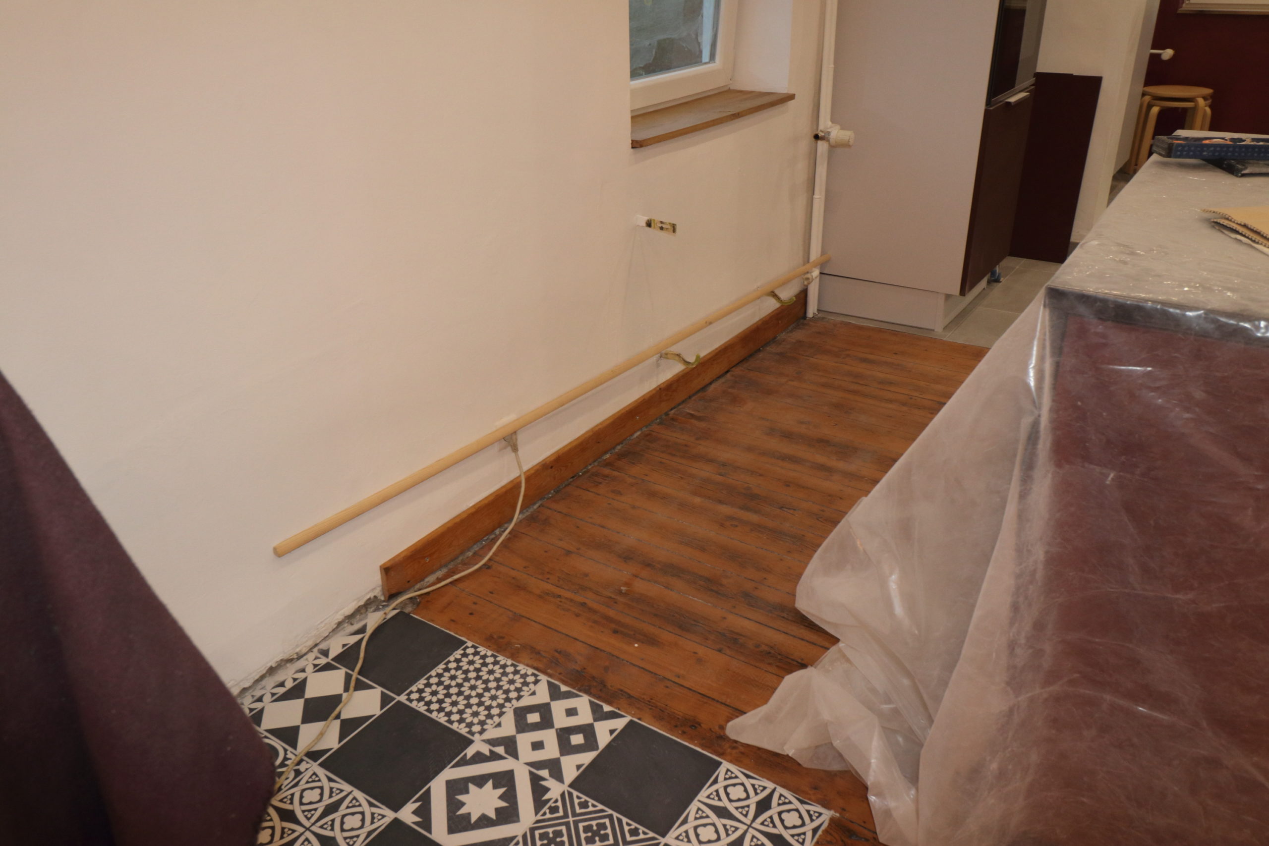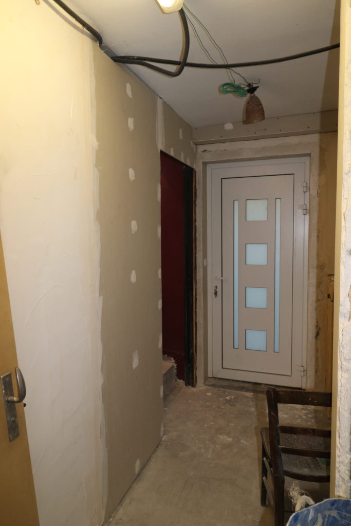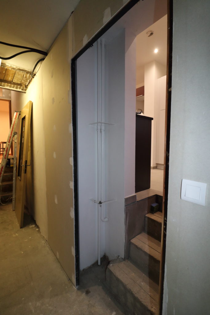 Joint de plaques dans le couloir et caisson autour du tuyau d’évacuation