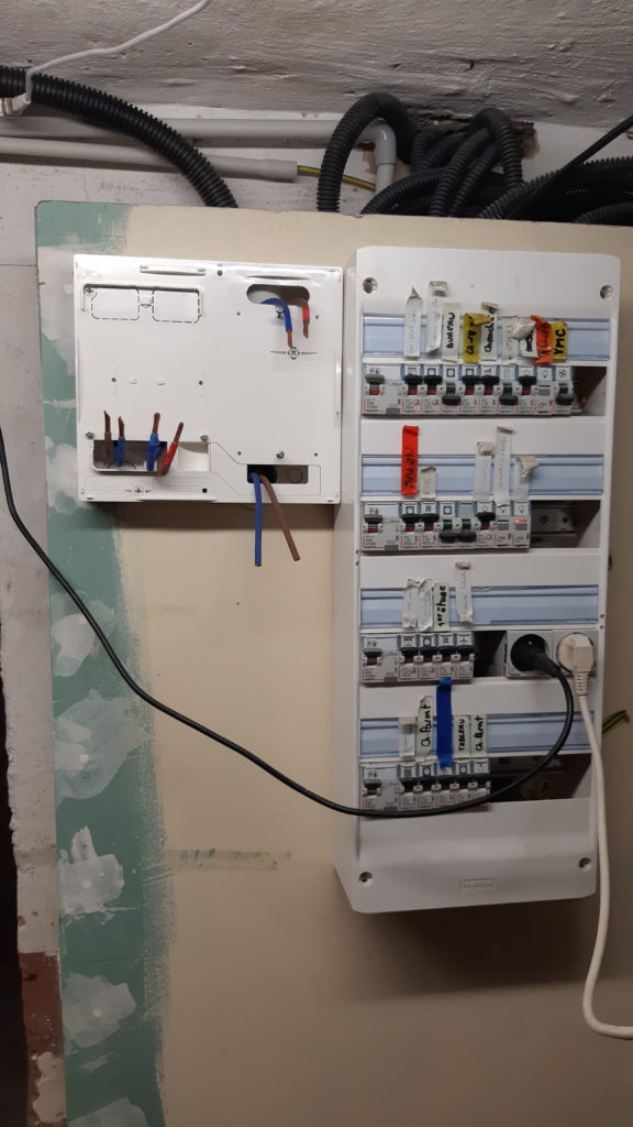 Installation de la platine électrique pour déplacement du compteur et du disjoncteur