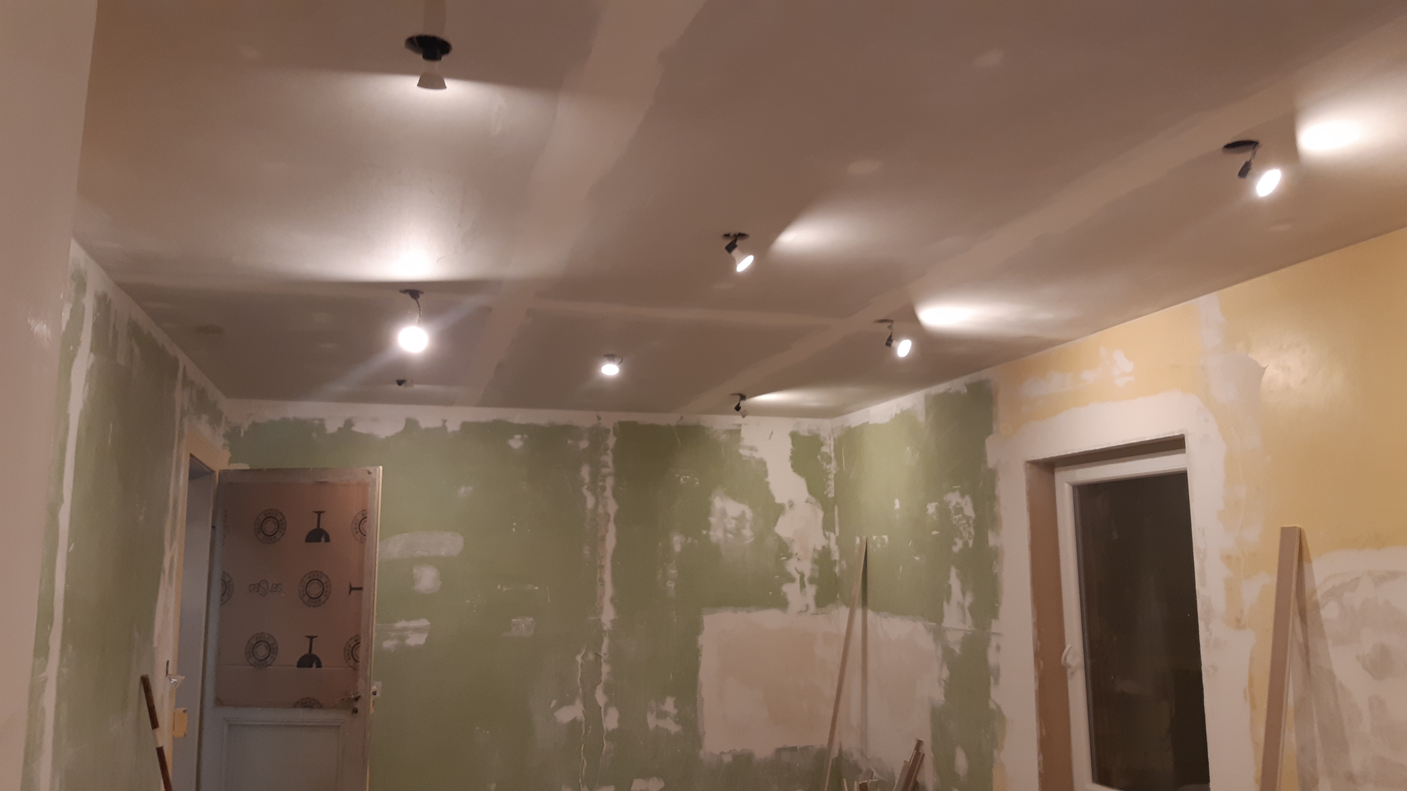 Dernière finition aux murs et au plafond avant la sous-couche de peinture