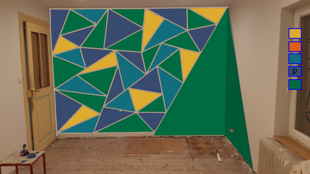 Remplissage en peinture ; le jaune et le bleu miami pour l’un ; l’émeraude et le bleu denim pour l’autre
