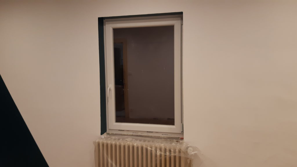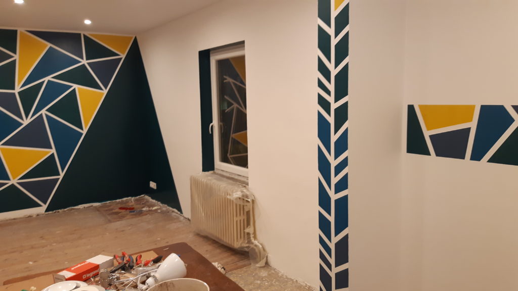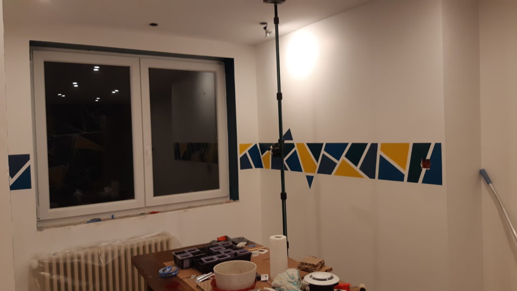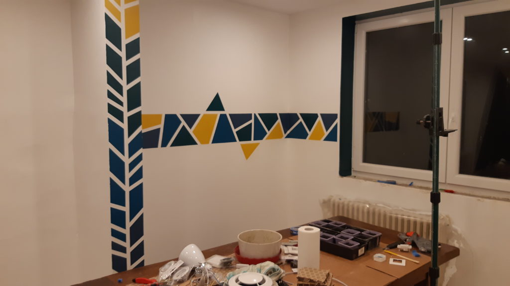 Peinture des tours de fenêtres et de 2 frises sur le mur (verticale et horizontale)