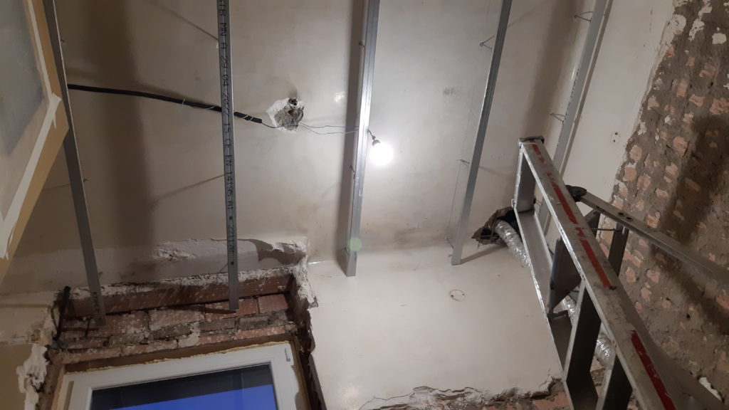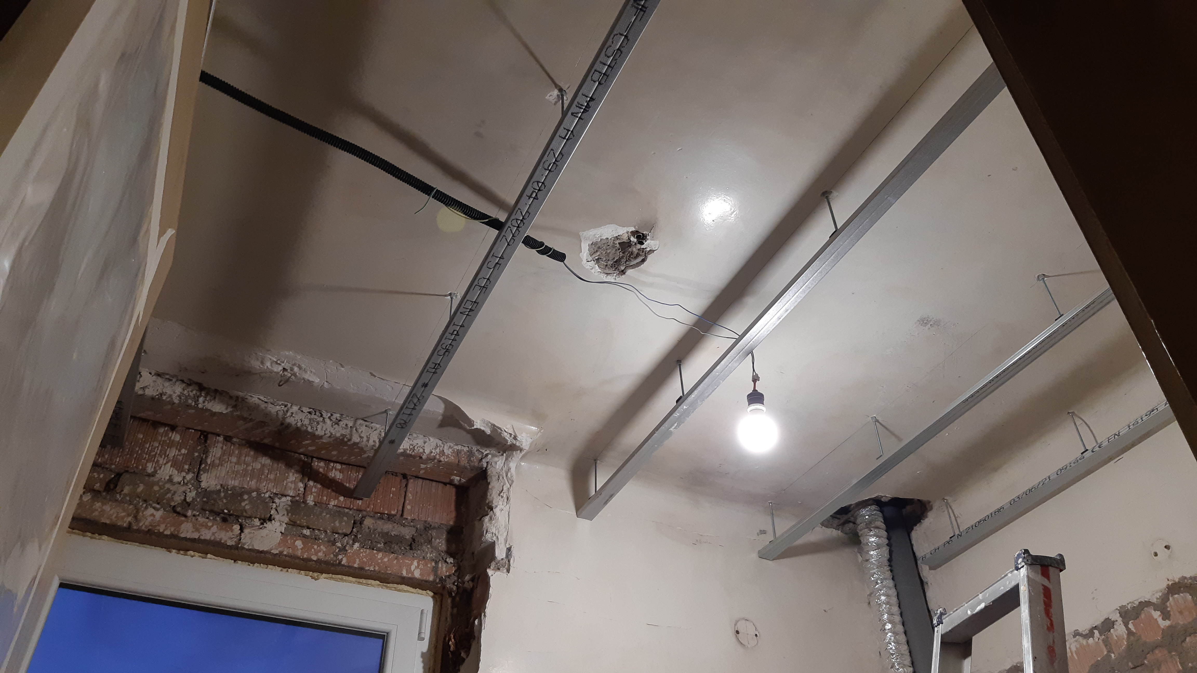 Mise en place des suspentes et fourrures métalliques pour la salle de bain