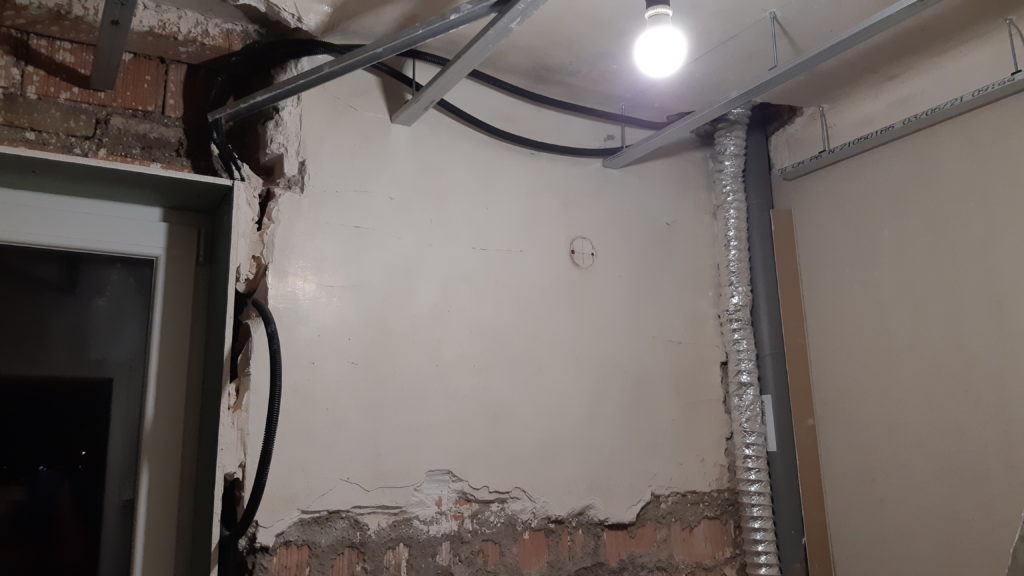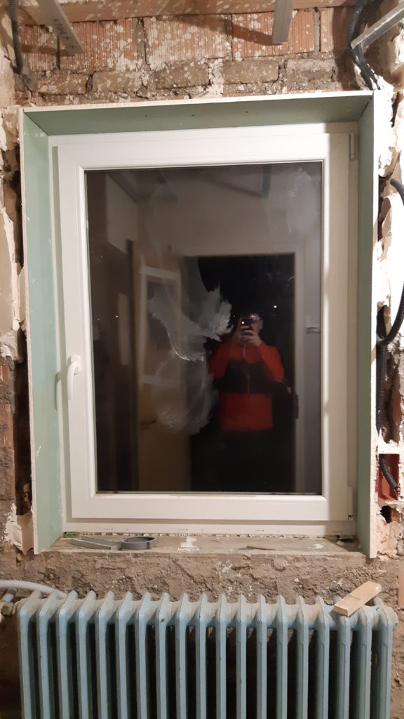 Finition tour de fenêtre de la salle de bain et passage de gaines électriques