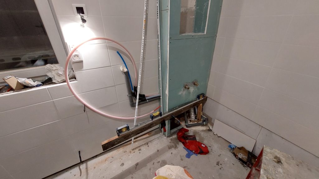 • Plomberie arrivées d’eau pour le lavabo et repositionnement des arrivées d’eau baignoire