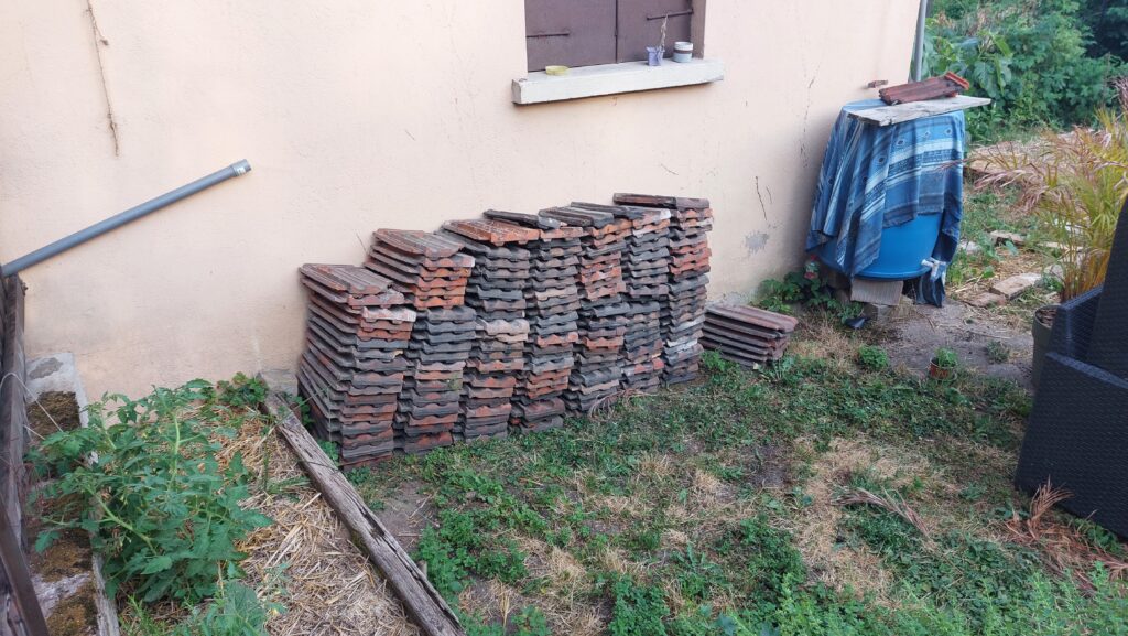Déménagement des tuiles du grenier dans le jardin