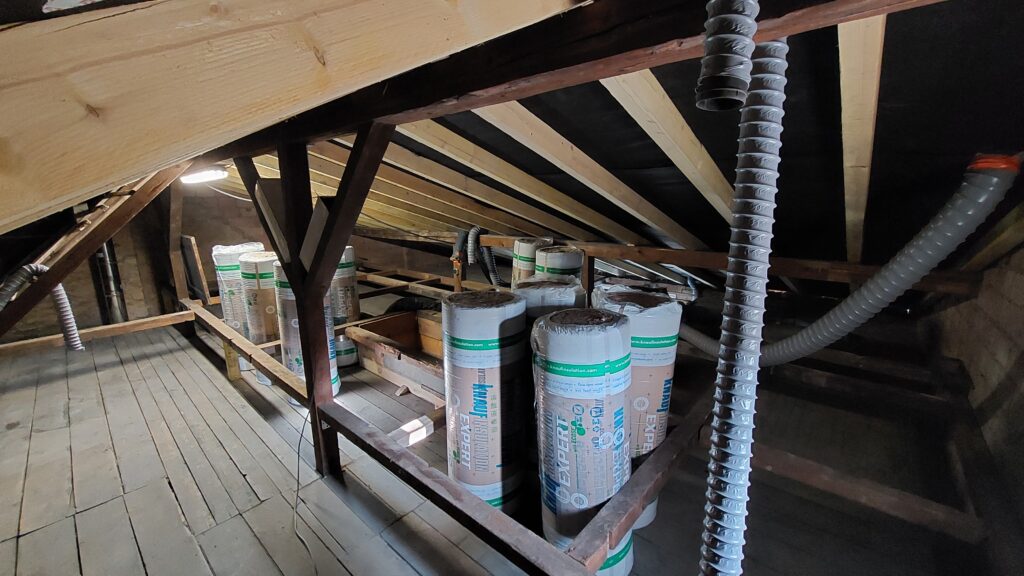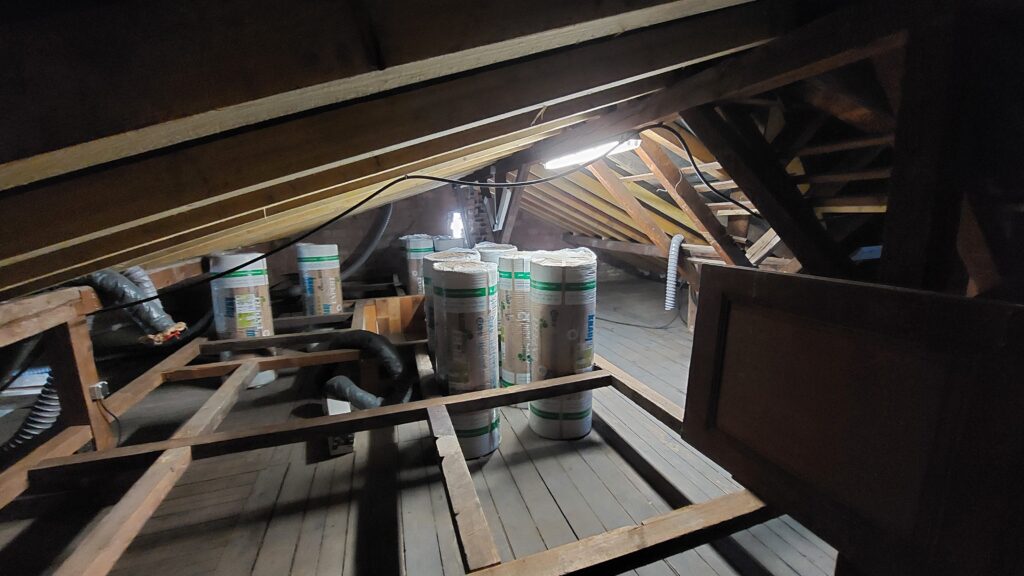 Fin des préparatifs dans le grenier pour poser la laine de verre