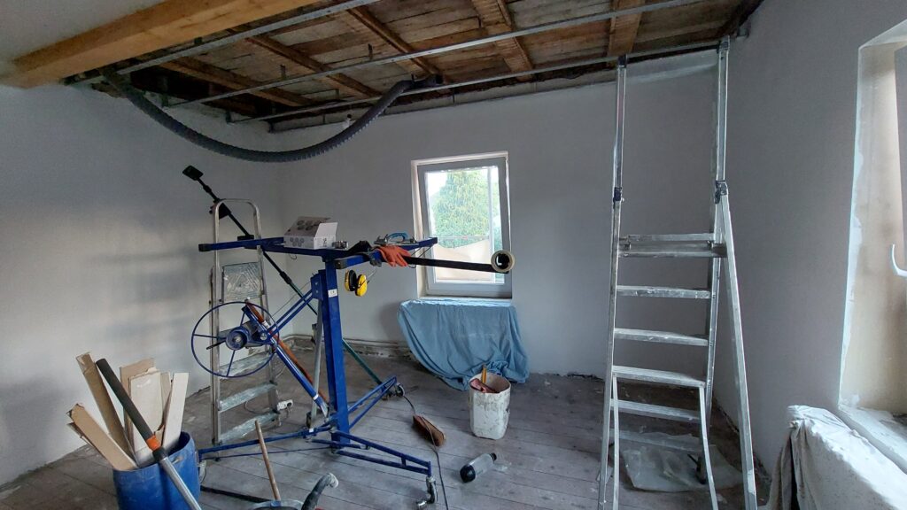 Finalisation de la sous-couche sur les murs dans la chambre à l’est.