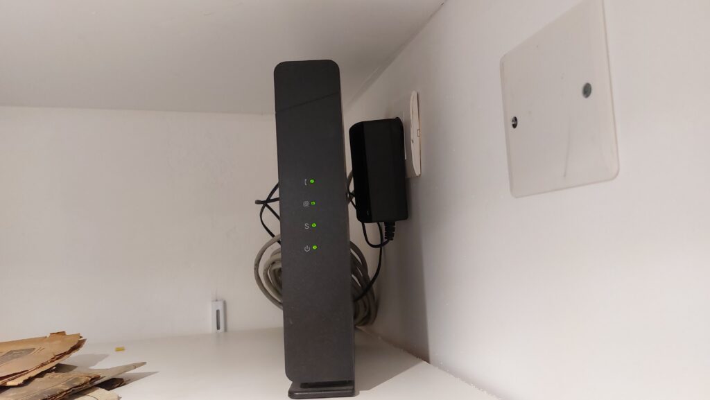 Déménagement de la box dans le placard. Ajout de prises et préparations pour tirer les 2 câbles réseaux
