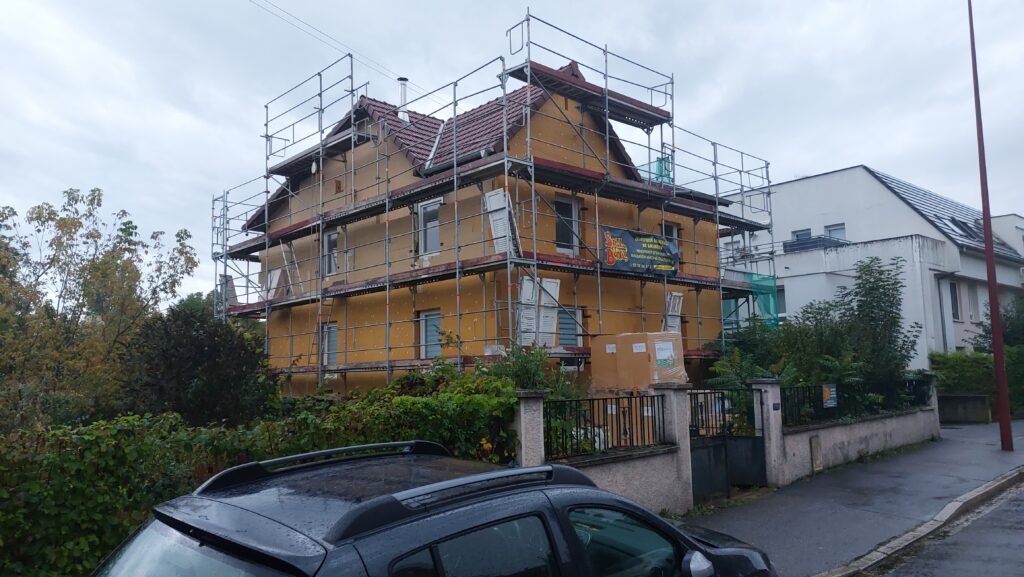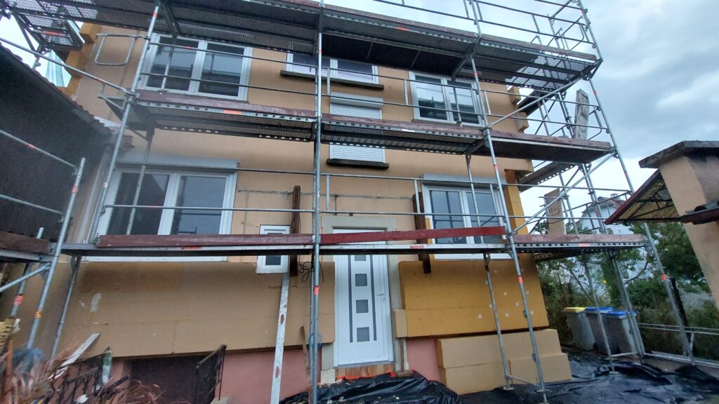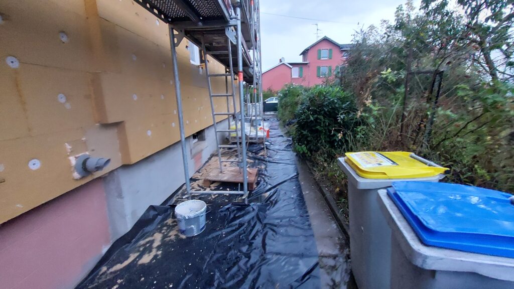 Pose de nouveaux panneaux d’isolant par l’âme façadier.