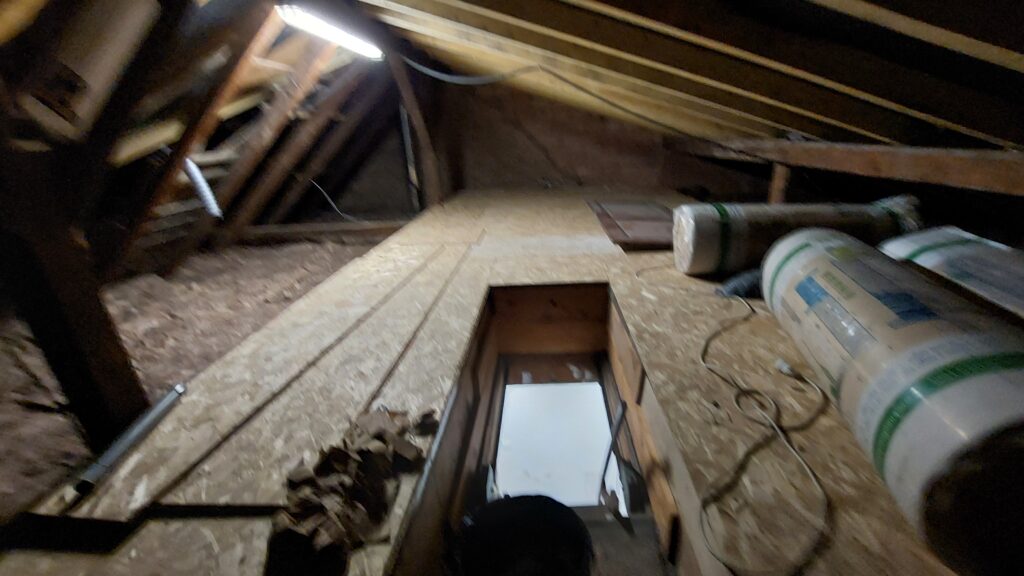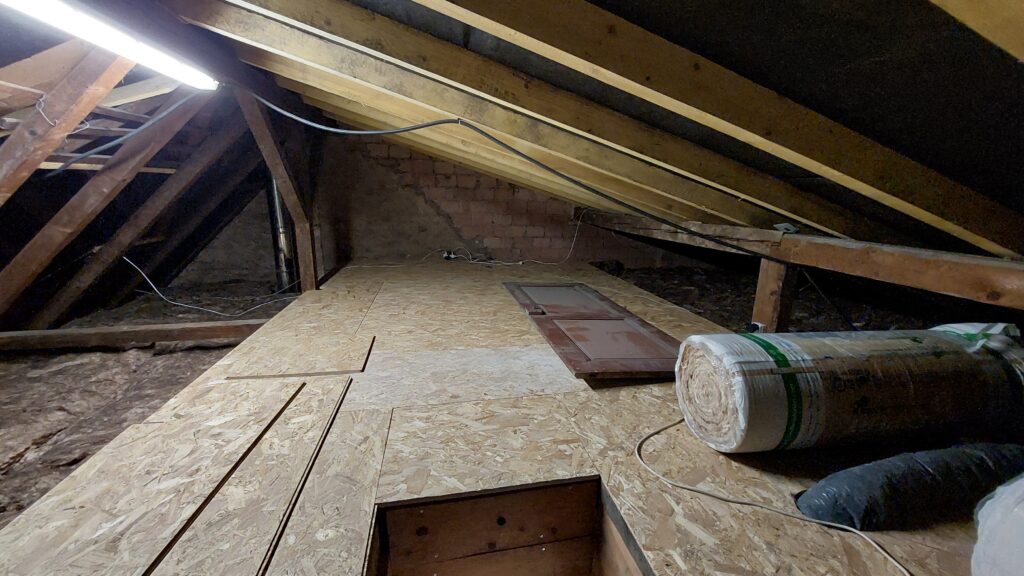 Suite de la laine de verre au grenier et installation du plancher pour circuler un minimum