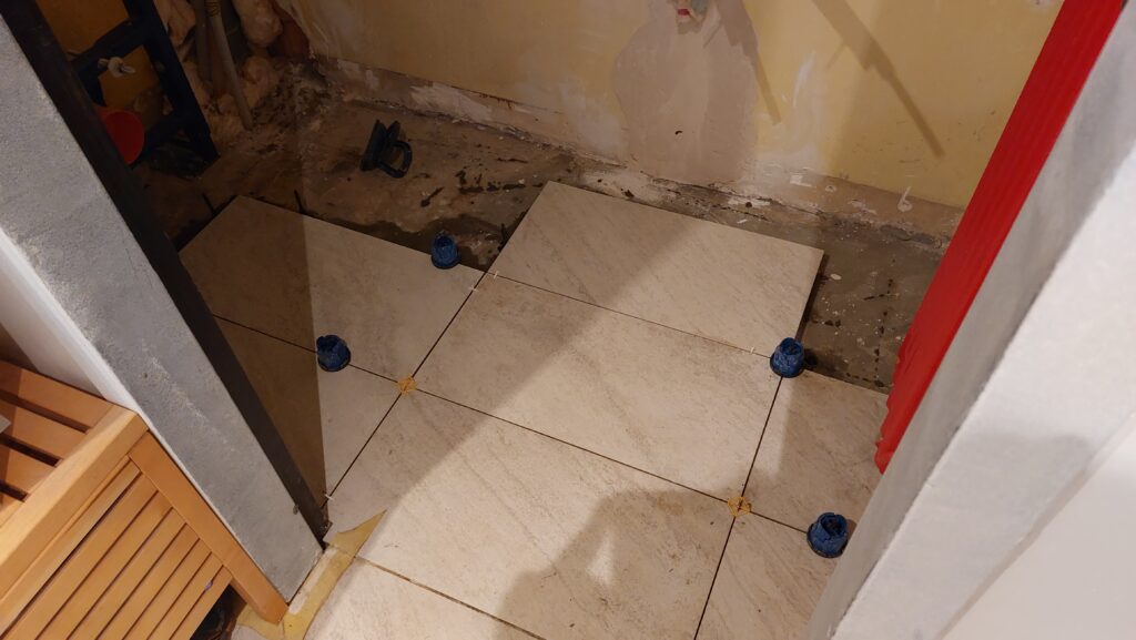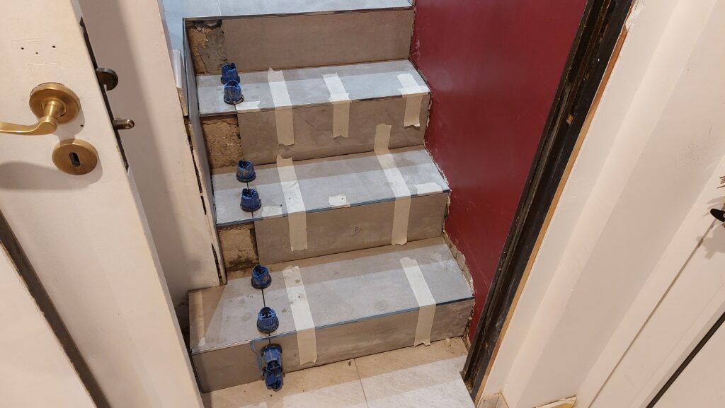 Carrelage sur l’escalier de la cuisine et dans le WC