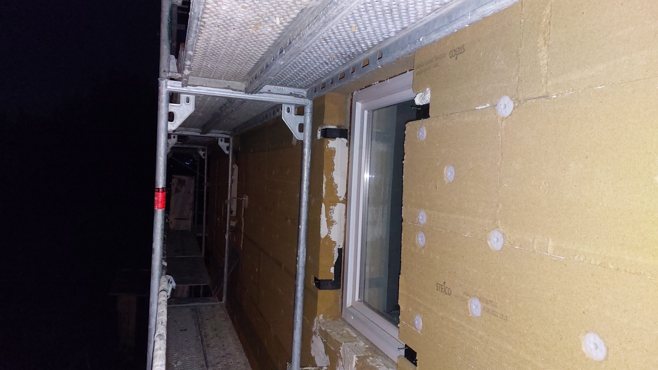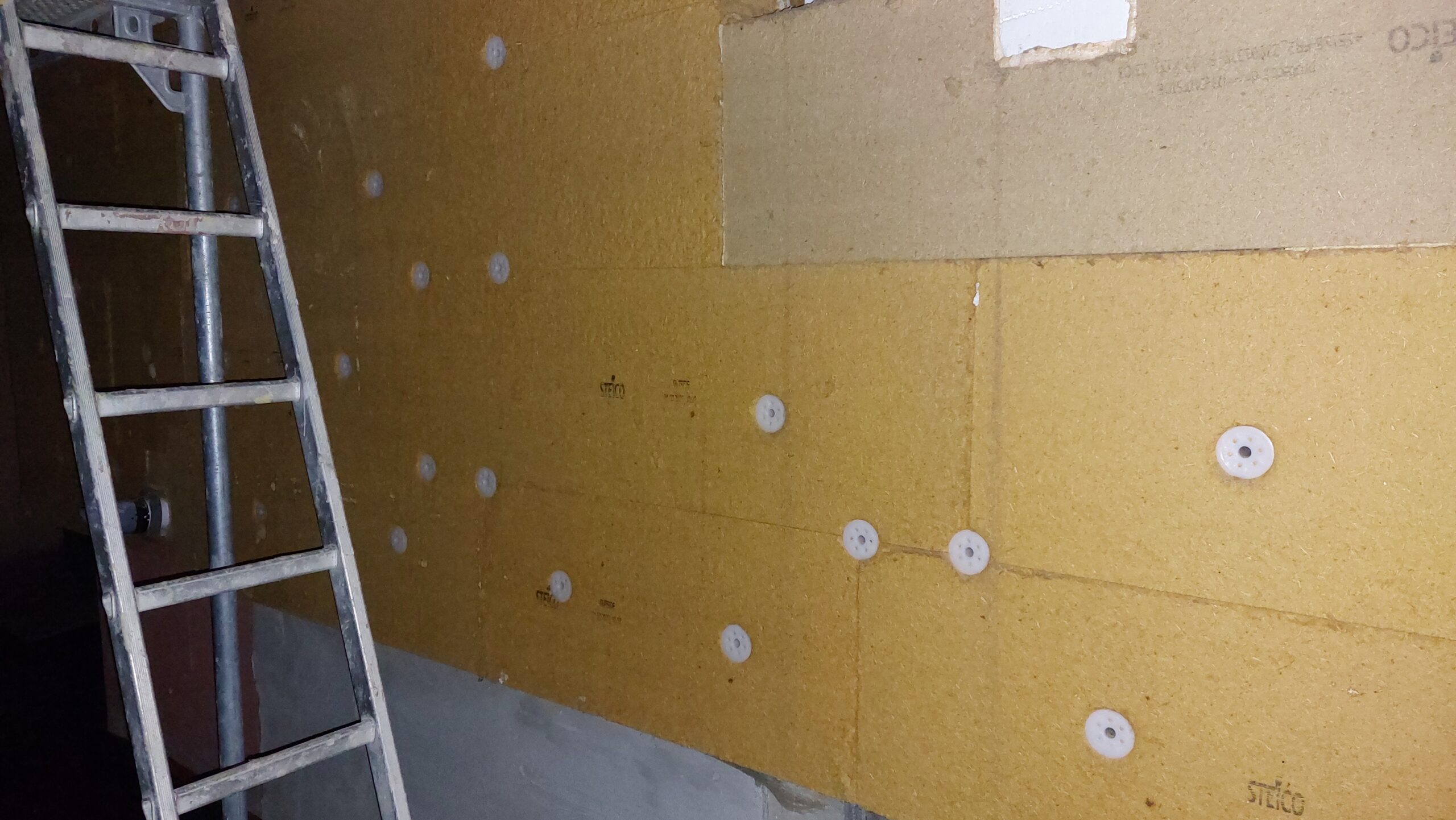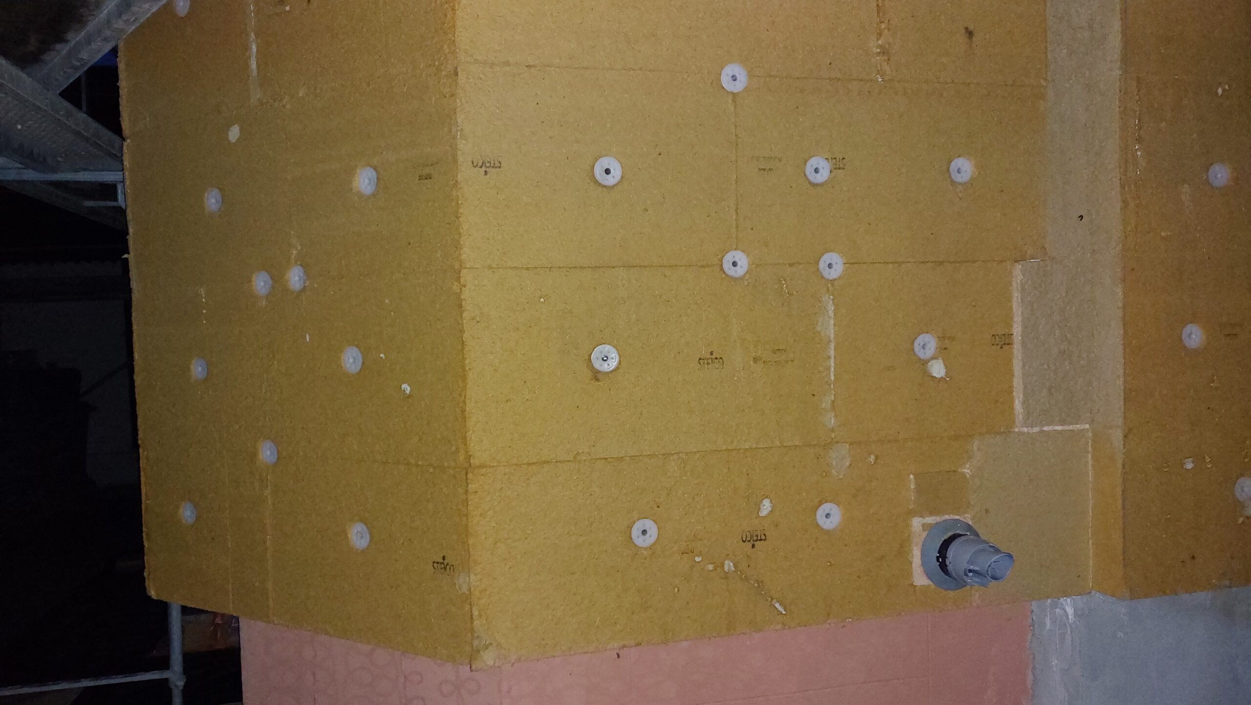 Mise en place des chevilles sur les façades Sud et Est. Il reste encore quelques chevilles à mettre en place à l’Est.