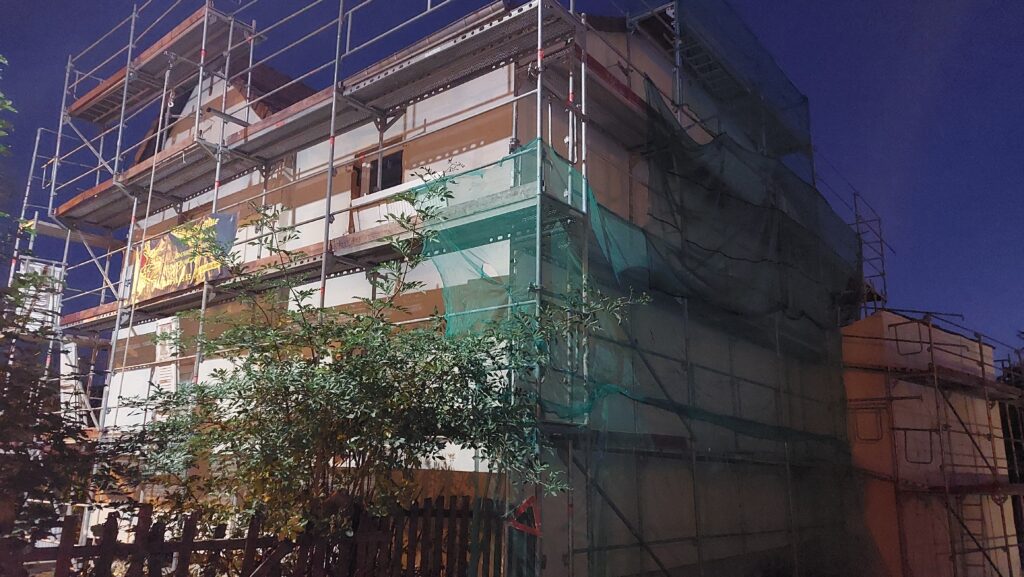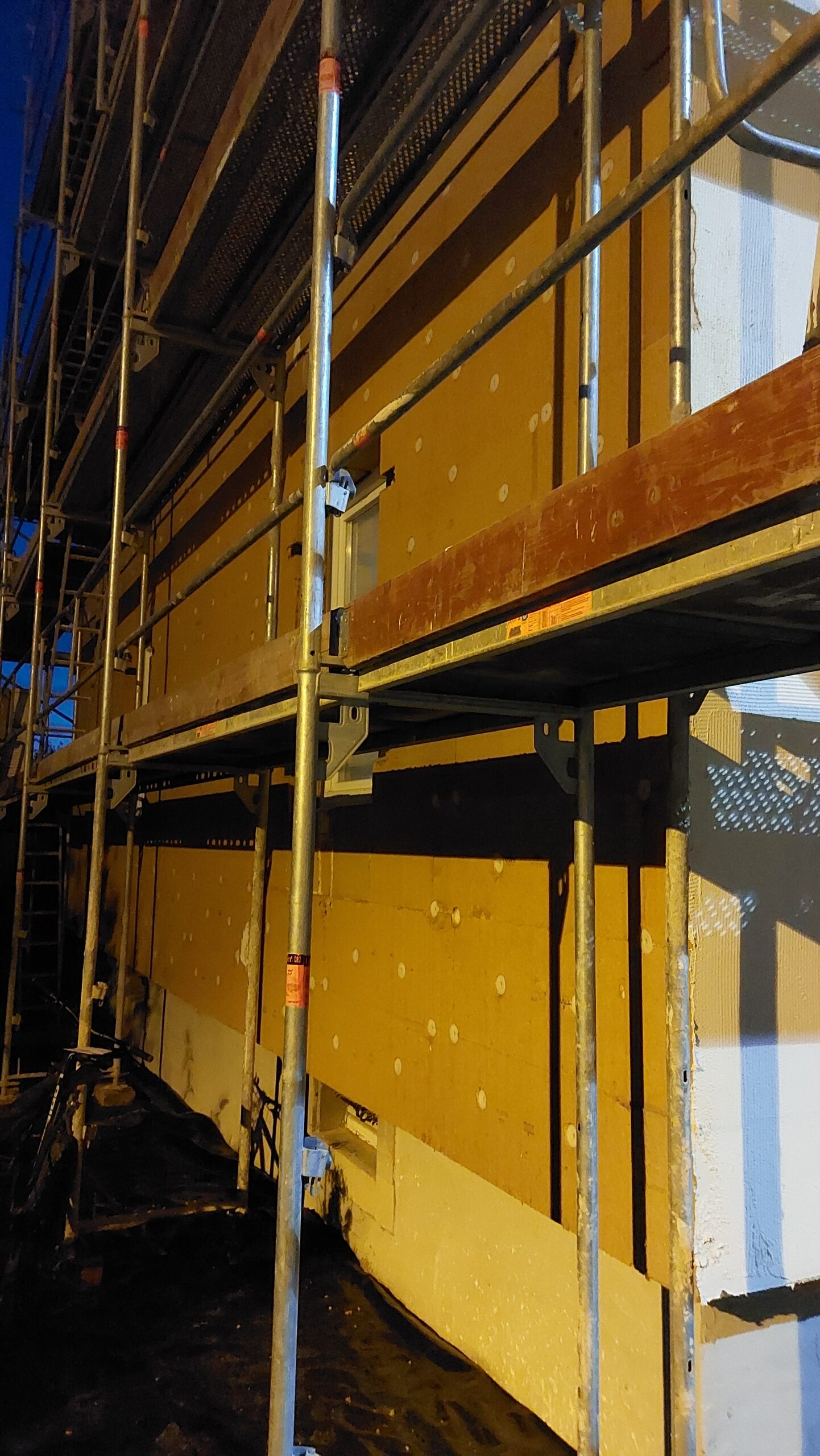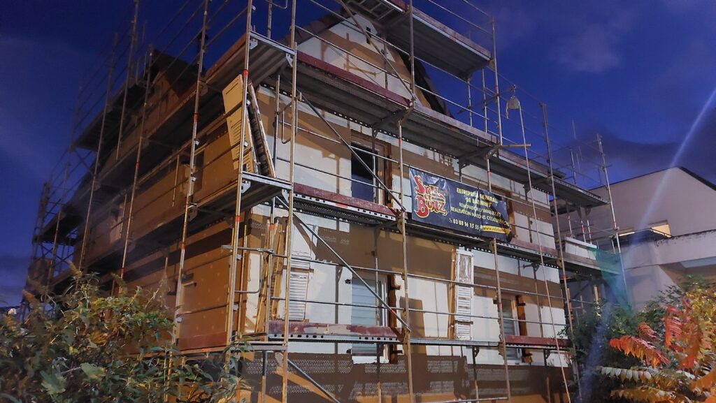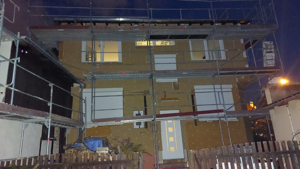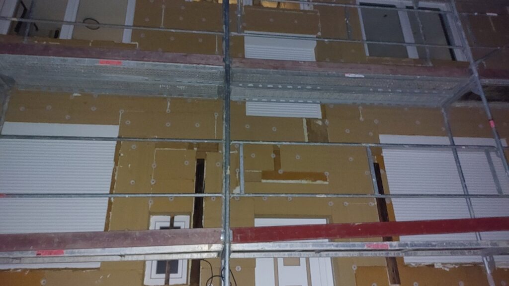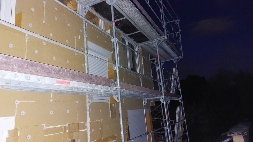 Mise en place des chevilles sur les façades Sud et Est. Il reste encore quelques chevilles à mettre en place à l’Est.