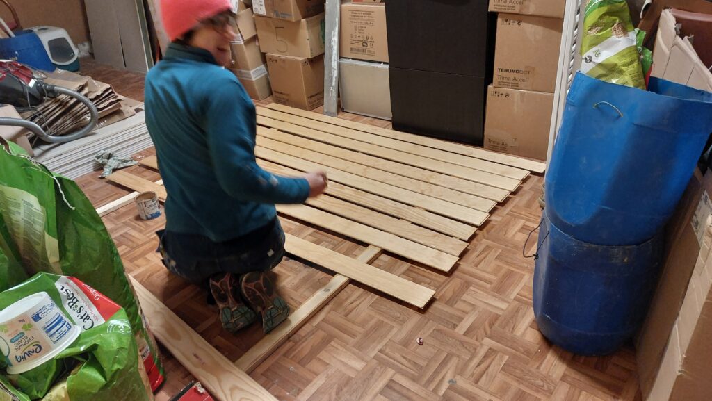 Passage du façadier pour faire du ménage, vérifier un détail pour rajouter des chevilles et réorganiser les matériaux sur le chantier