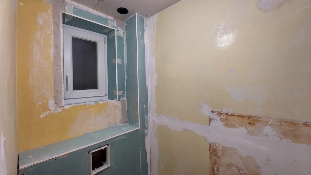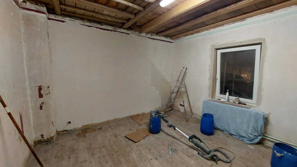 démarrage de l’enduit sur les murs dans la 2eme chambre