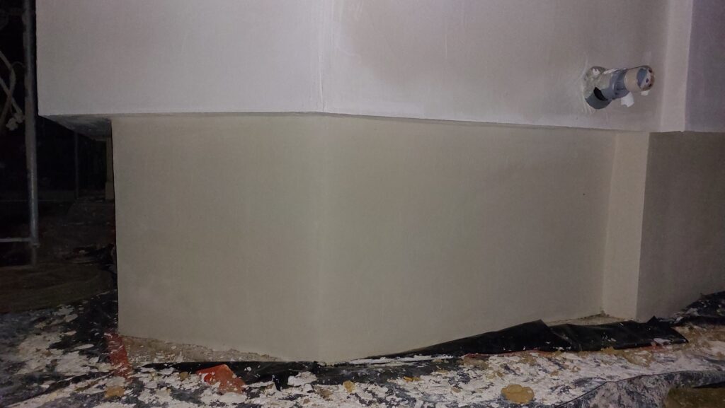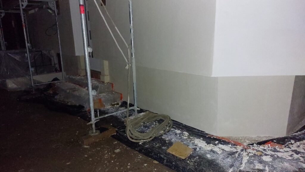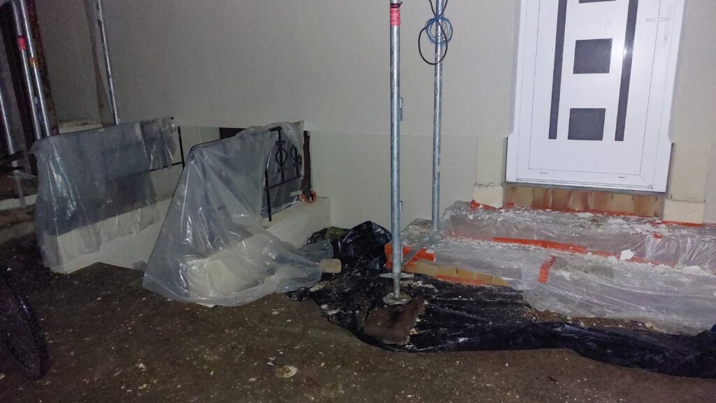 Poursuite de la pose du filet colle sur la façade sud ainsi que tous les soubassements. L’intérieur de la remise a aussi été fait et l’espace entre l’isolant et le sol dans la remise a bien été bouché comme demandé. Un coup de ménage a aussi été fait.