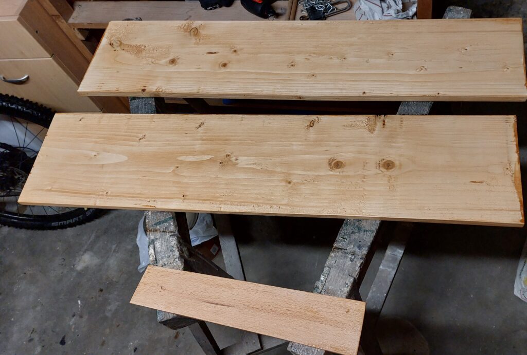 Ponçage et vitrification des tablettes de fenêtre de la chambre Nord-Est et de la mini-tablette de notre chambre