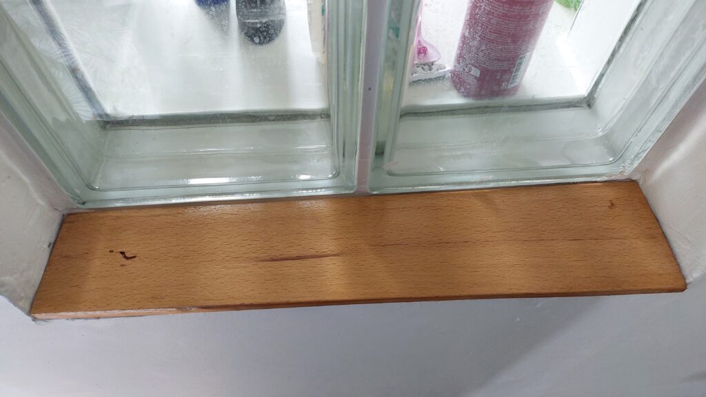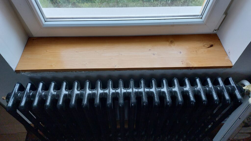 Mise en place des tablettes de fenêtre de la chambre Est. Restera quelques finitions