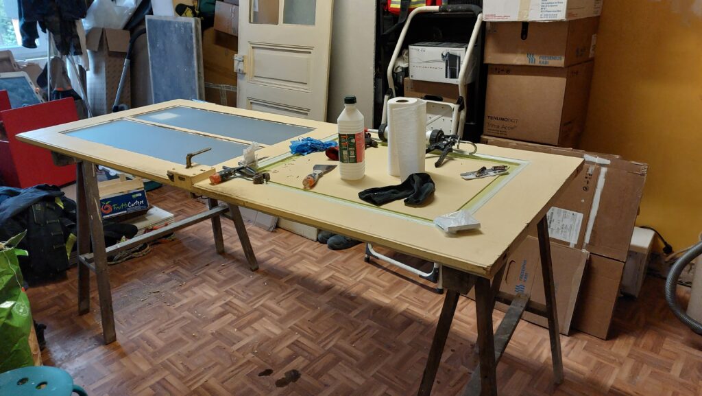 Descente de la porte du bureau et installation des vitres opacifiantes