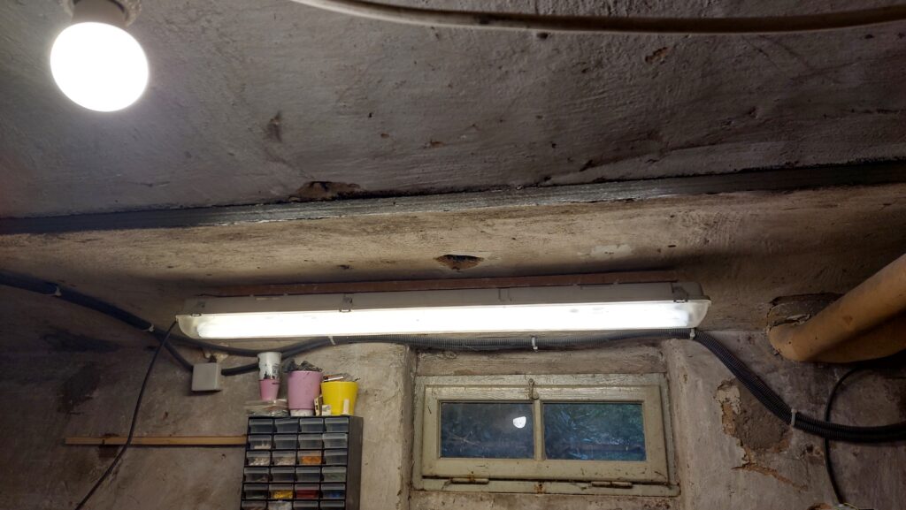 Installation d’une nouvelle lumière à la cave, au dessus de l’établi