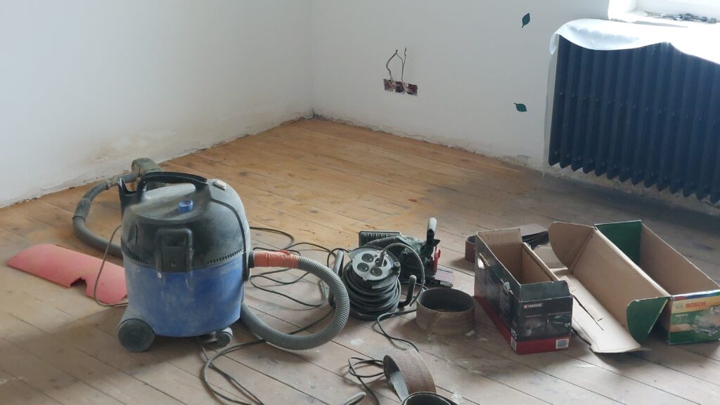 Démarrage du ponçage dans la chambre Ouest