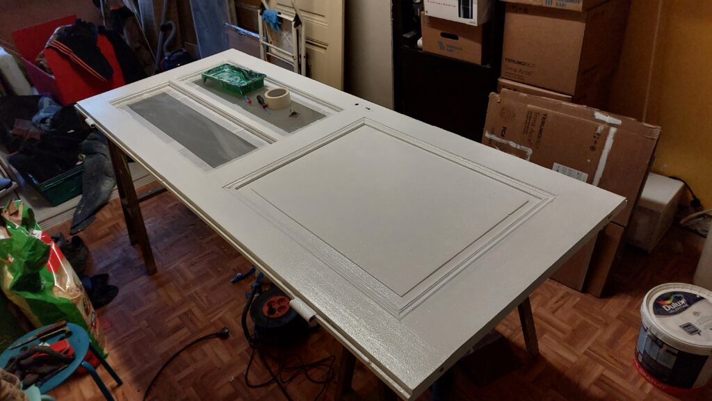 Mise en peinture de la 2ème face de la porte du bureau, encore une couche et ce sera fini