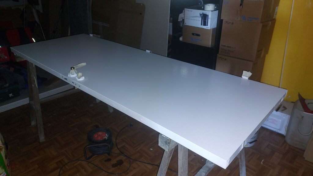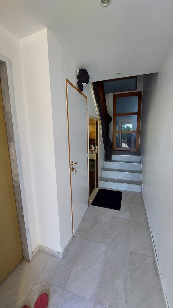 - Mise en place de 2 couches de peintures sur la porte du placard de l’entrée et remise en place