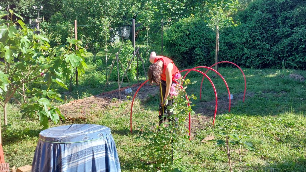 Début de construction d’une serre pour les tomates avec les moyens du bords, de la ferraille à béton et des restes de PER