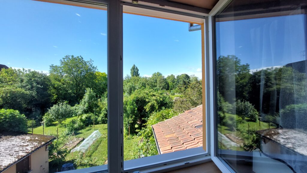 Installation de moustiquaires sur les grandes fenêtres de la chambre parentale et de la cuisine.