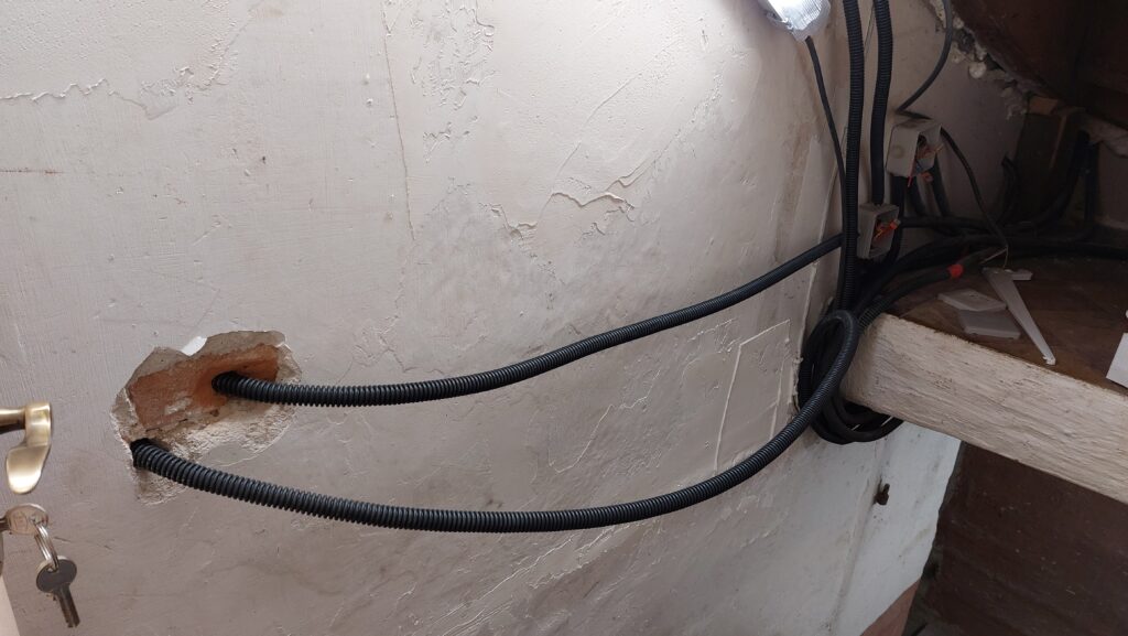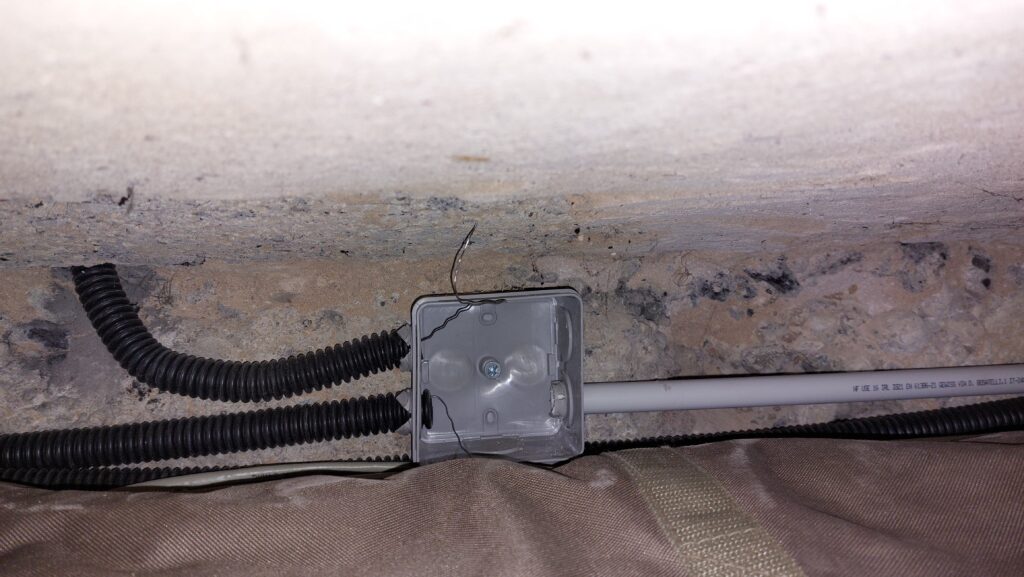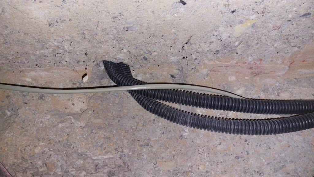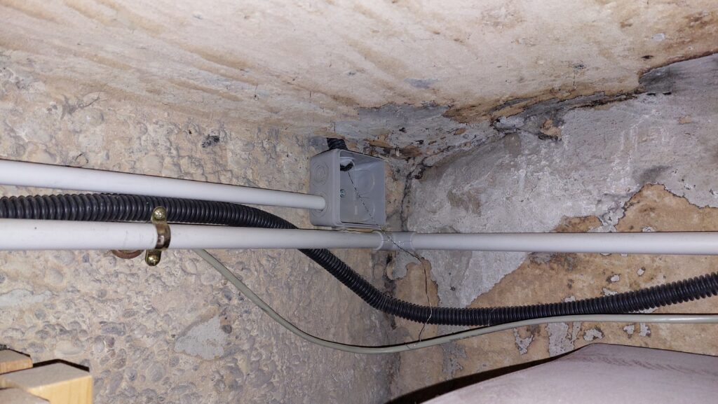 Passage des gaines et installation des boîtes de raccordement au sous-sol