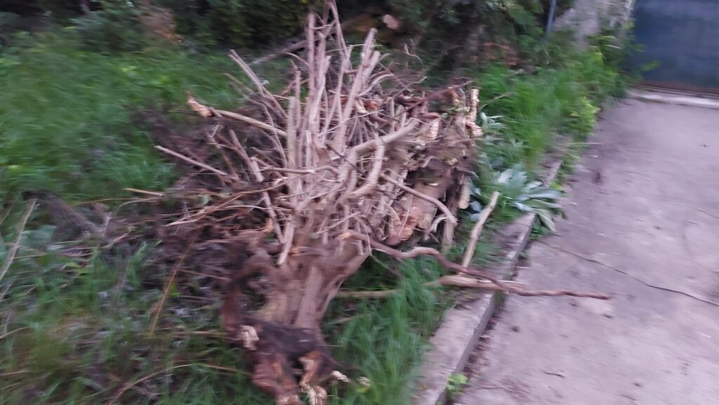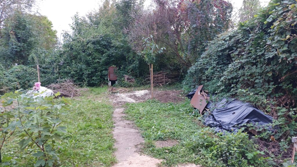 retrait de l’arbre à papillon et enlèvement de la souche qui était déjà bien pourrie. Un tour à la decheterie.