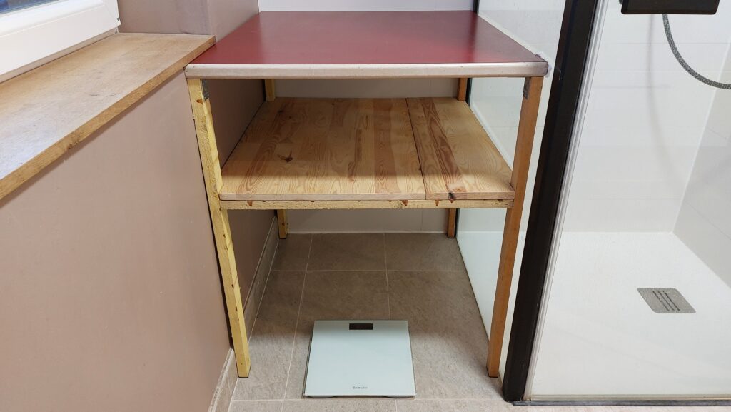 Nouveau remplissage des trous avec de la résine époxy à poncer dans les marches de l’escalier