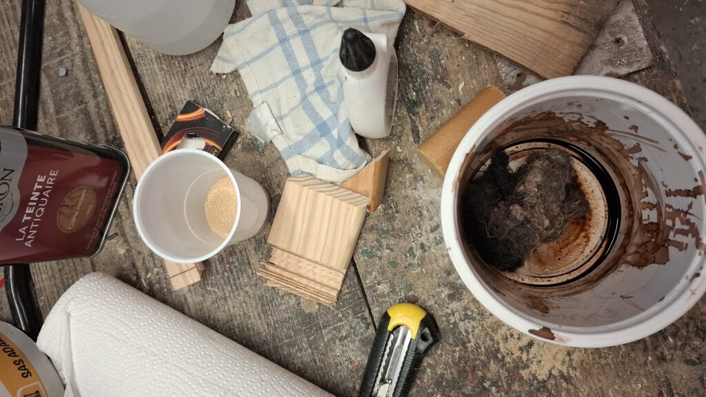 Découpe, teinte et vitrificateur sur des plantes de l’escalier.