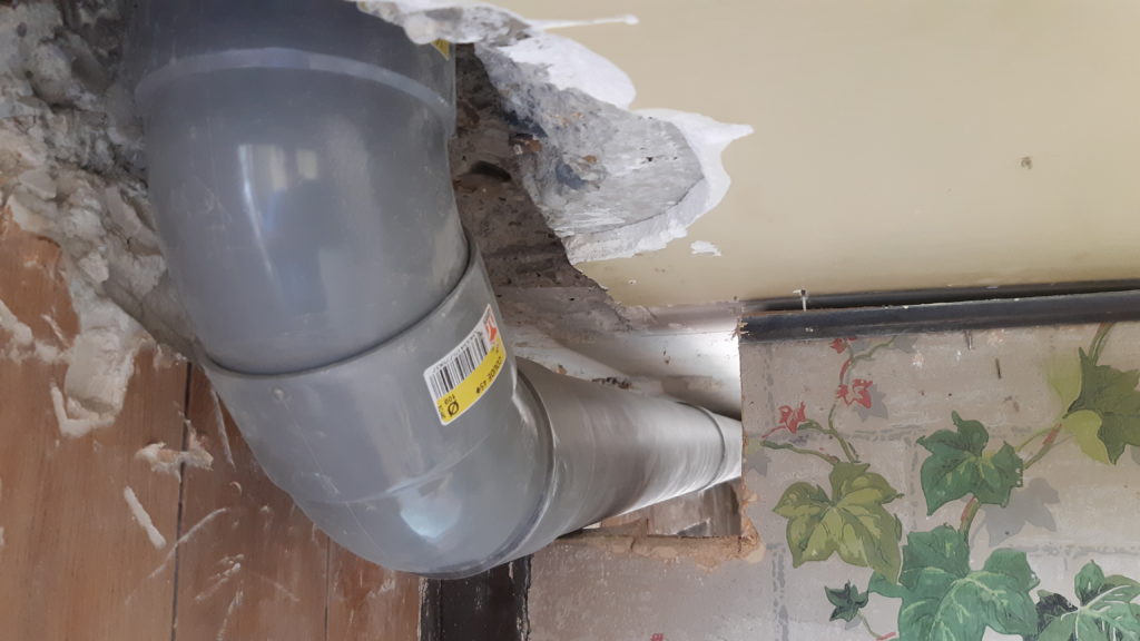 Le coude et la ligne d’évacuation du WC de la salle de bain par le dessous