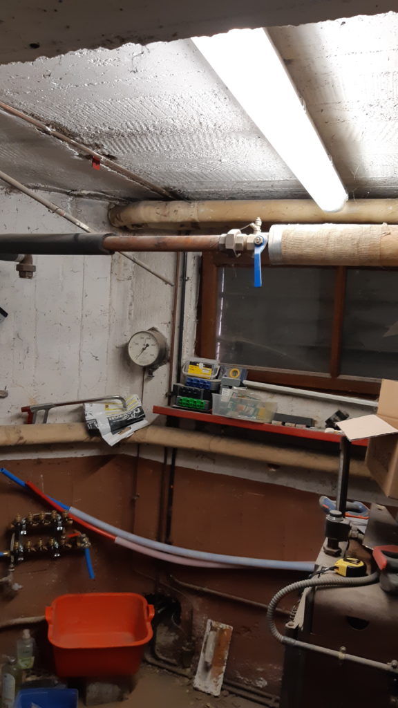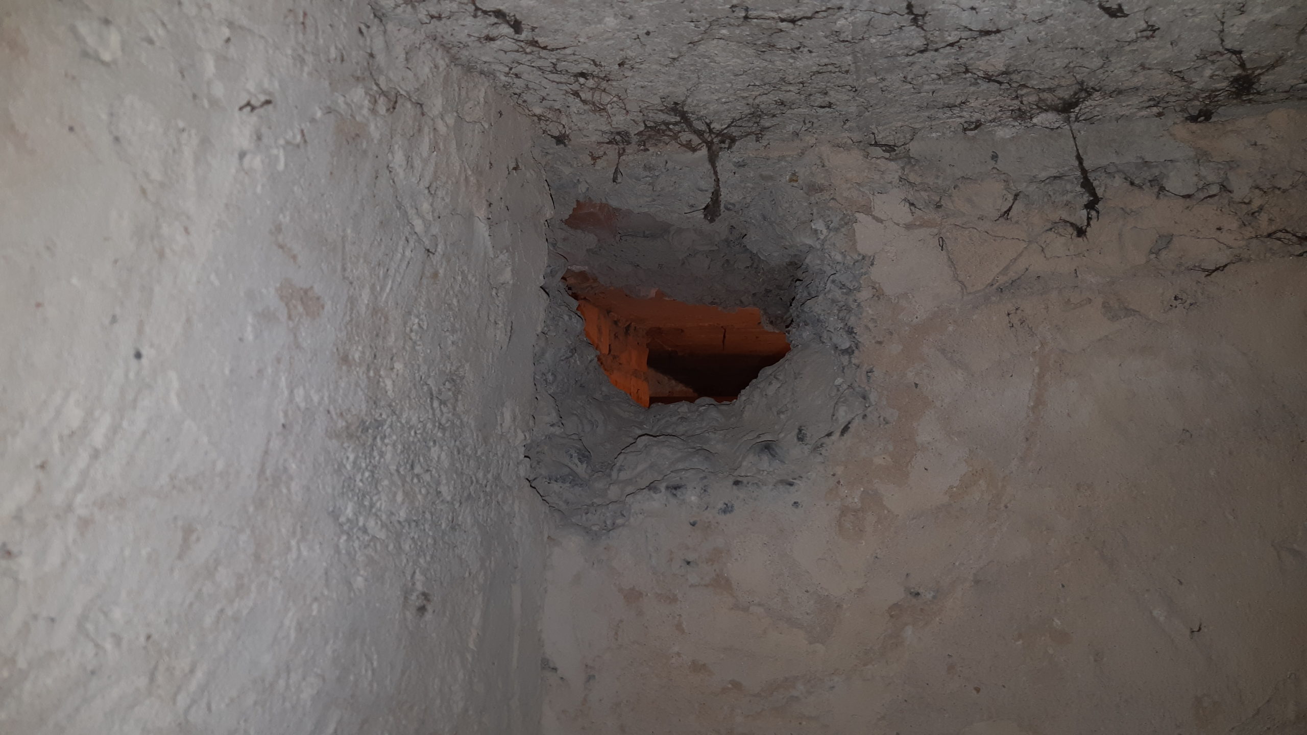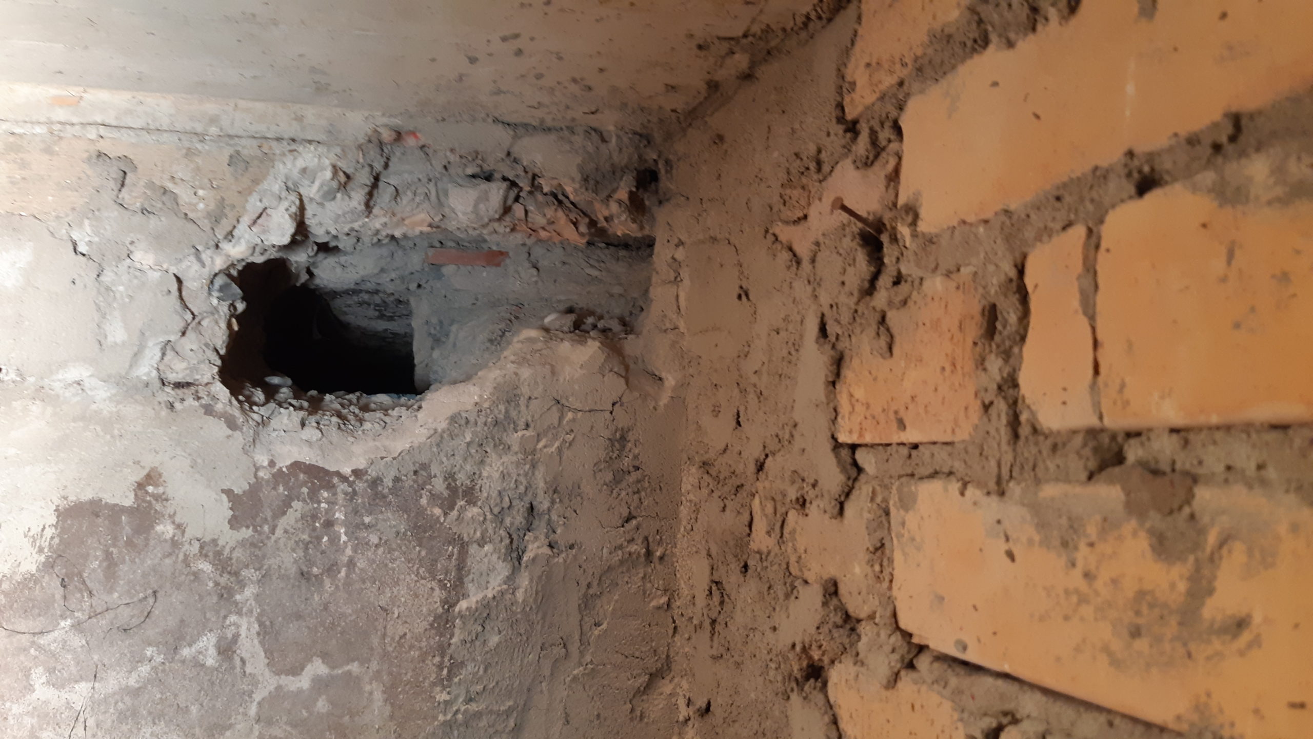 Trou pour passer les gaines électriques qui côté chaudière. Les gaines iront dans les étages par la cheminée désaffectée qui se trouve à droite