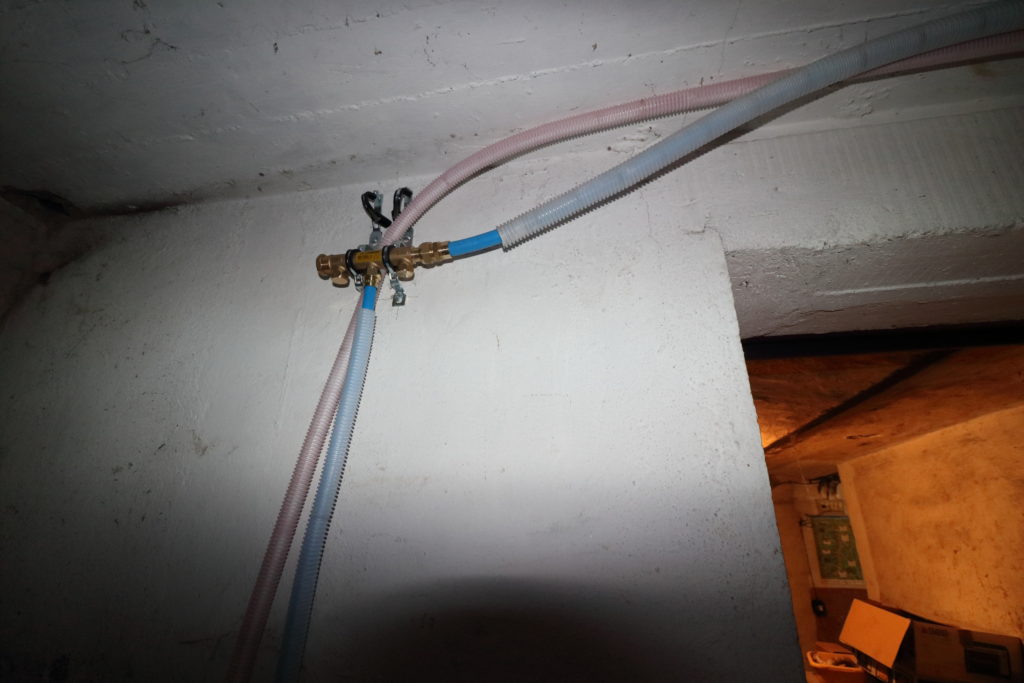 Poursuite d’installation PER vers le sas du sous-sol. Obligé de faire des bricolages moyens car il y a une partie à passer au-dessus de la porte. Pas trouvé de meilleure idée. Des suggestions ?
