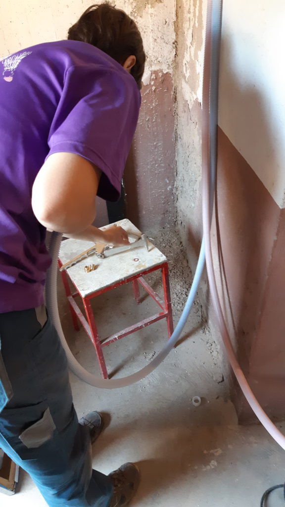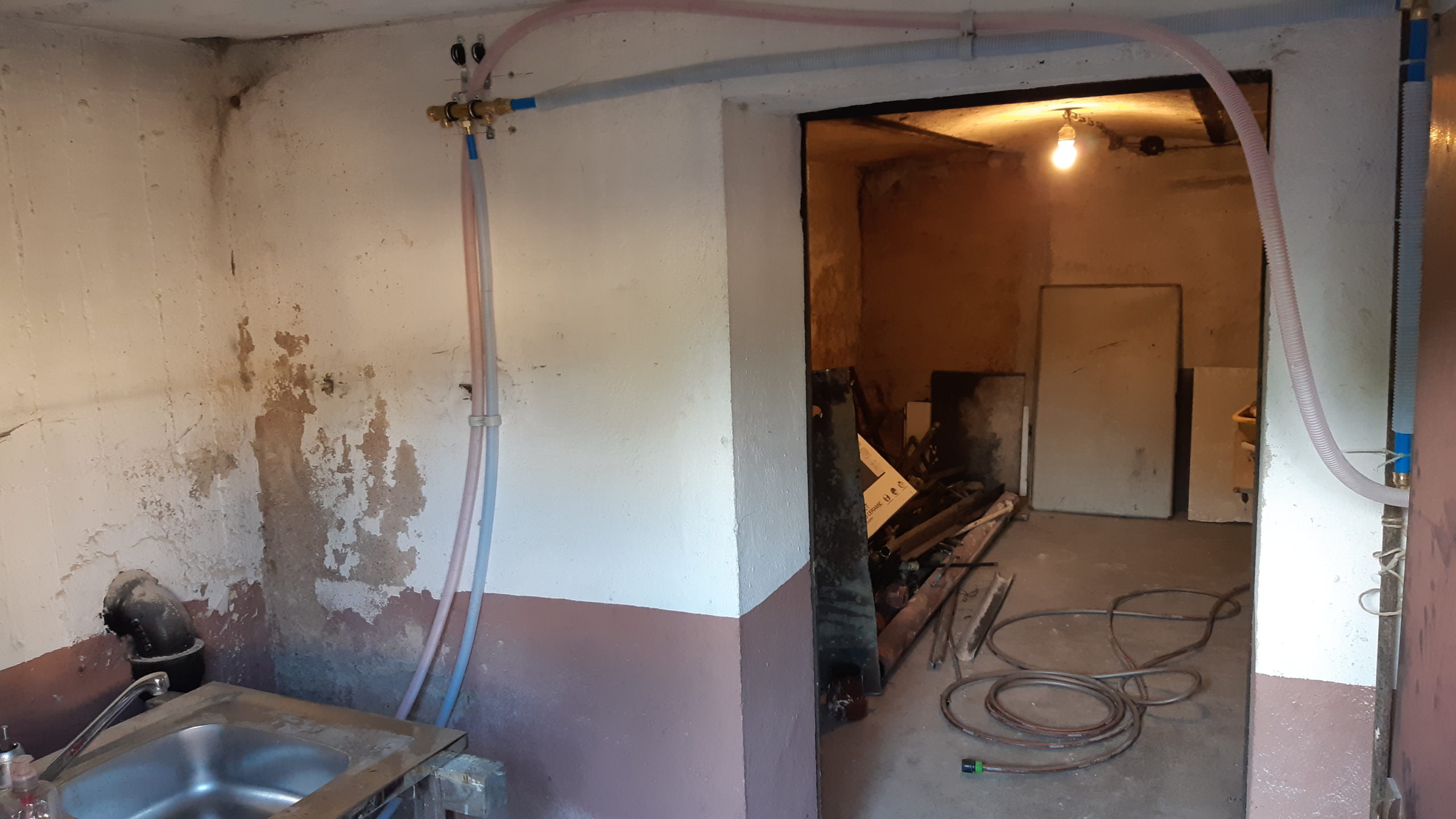 Un petit peu de démolition dans la cuisine pour virer les derniers bouts de beton, carreaux et colle qui restait afin de préparer le support pour consolider tout ça !