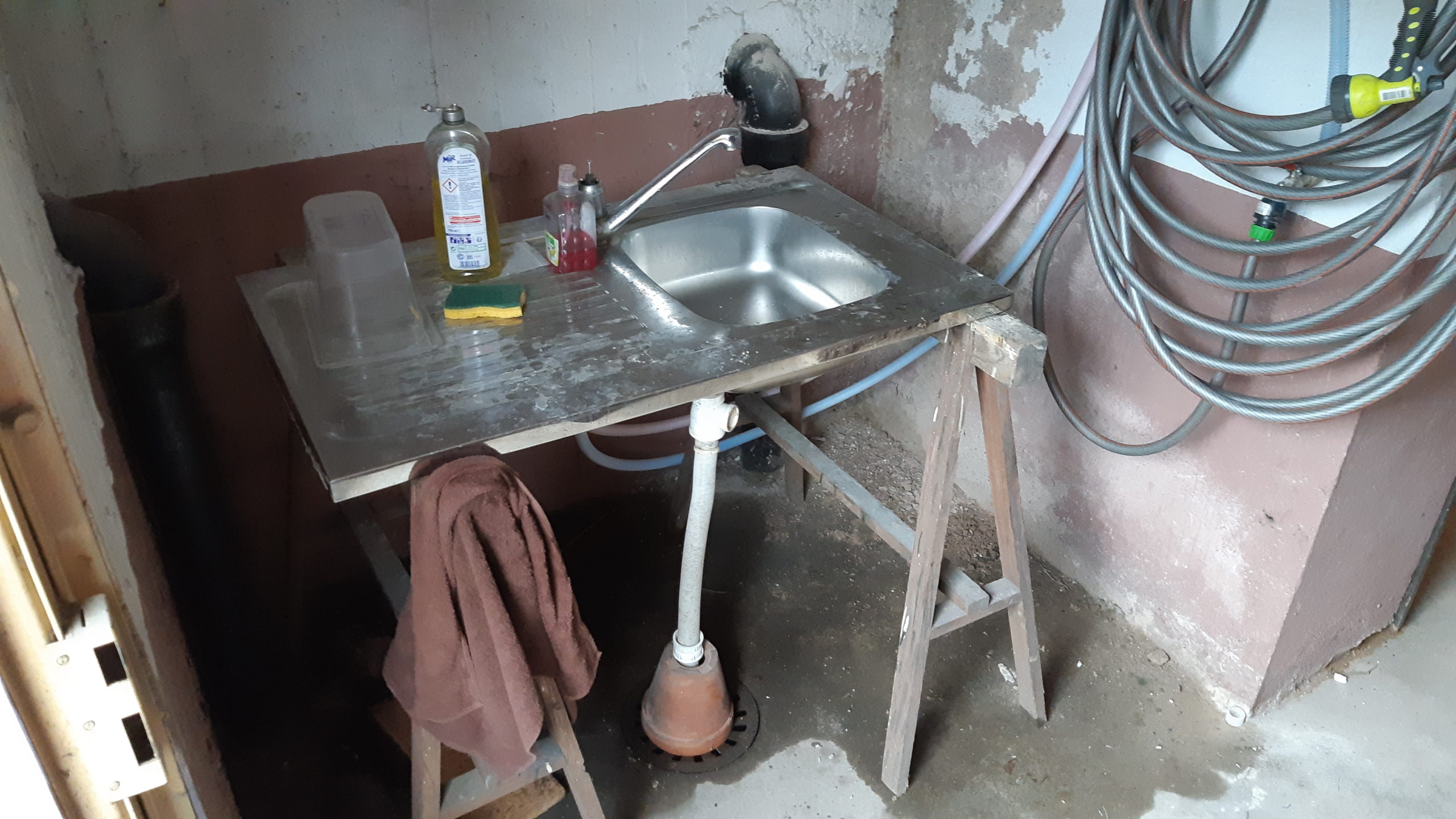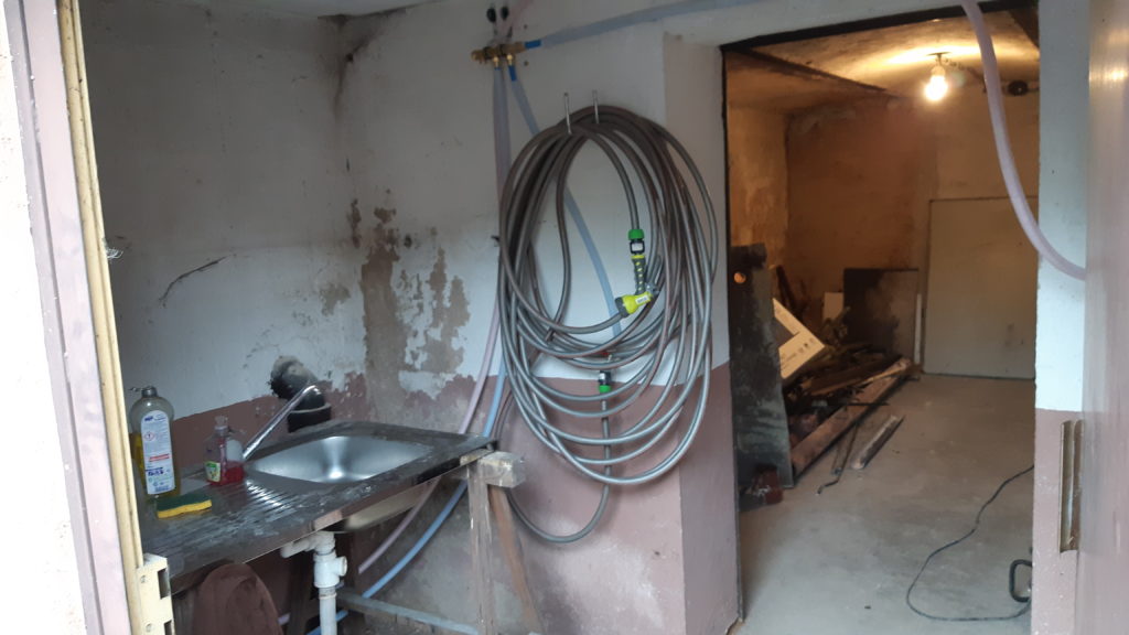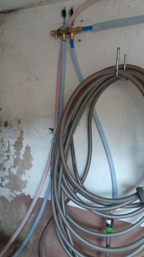 Commande du tableau électrique faite. Réception dans quelques jours. Puis, un passage chez Pompac pour quelques pièces de plomberies, un détour à la déchèterie. Arrivée à la maison dans l’après-midi pour l’installation d’un évier à la cave, du robinet pour le tuyau de jardin et raccordement au réseau d’eau de tout cela. Il manque quelques raccords pour l’eau chaude mais ca peut attendre !