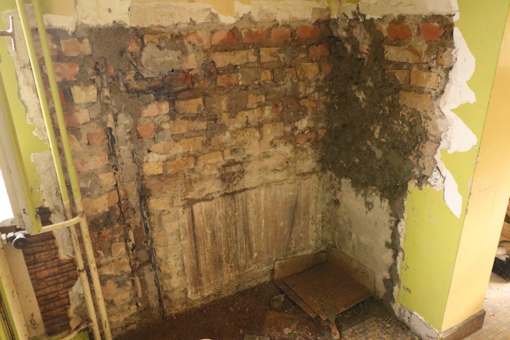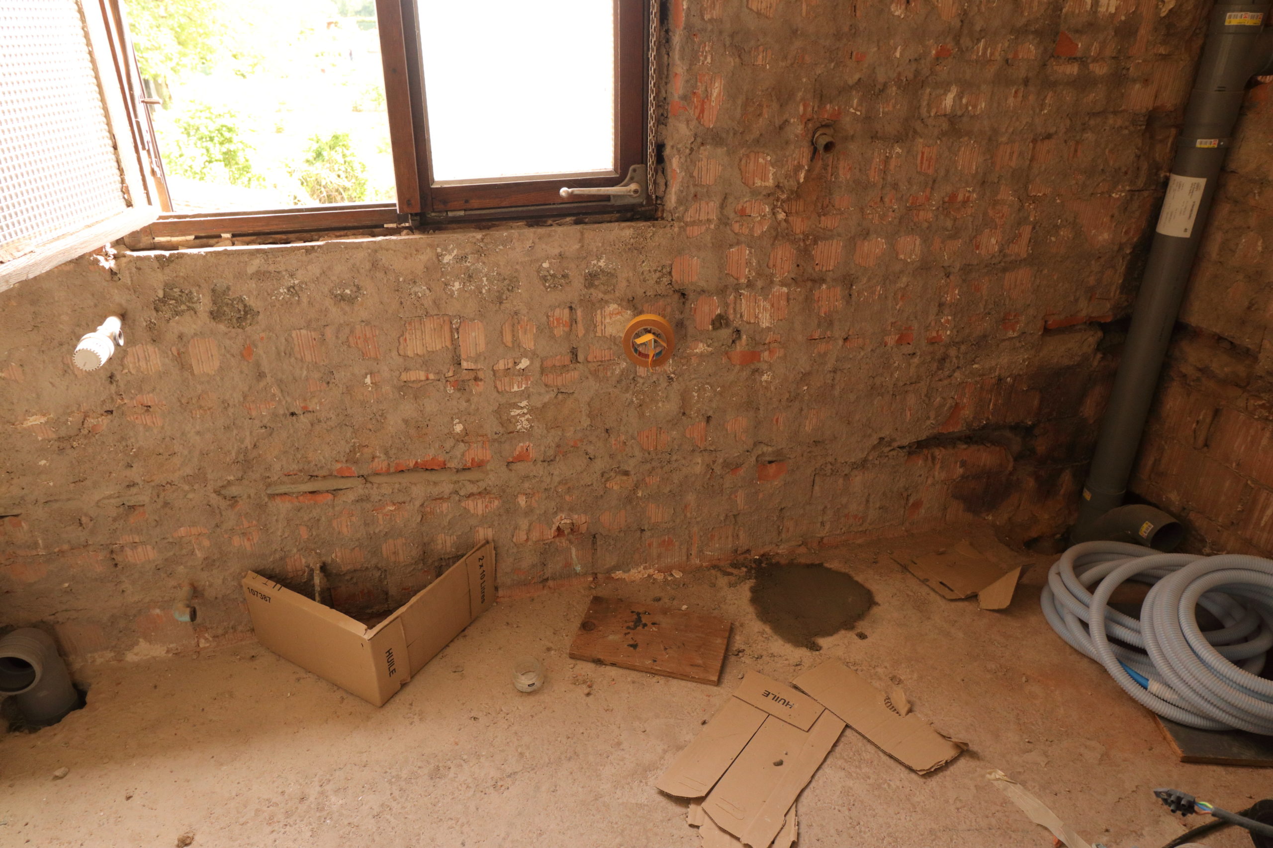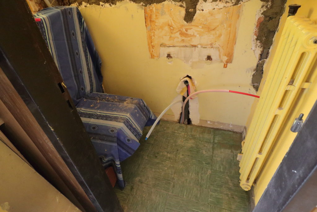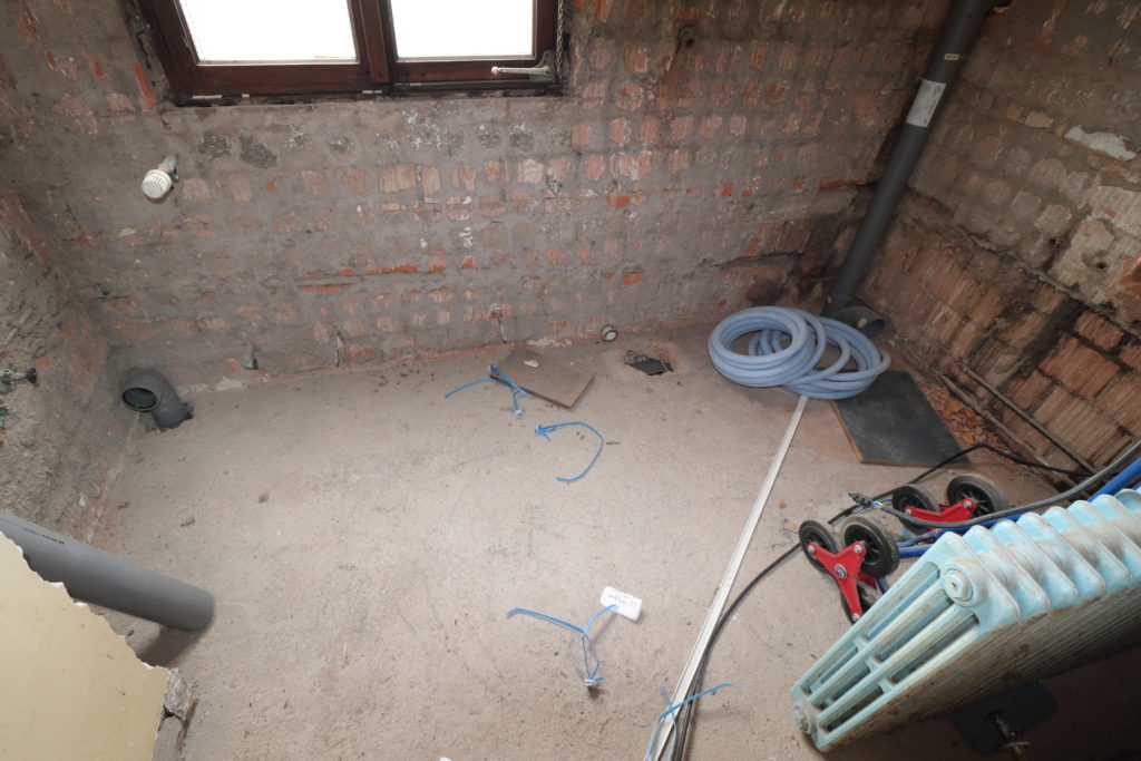 Un peu de béton pour combler les trous que l’on a fait pendant la démolition au niveau de la salle de bain et du trou de l’ancien WC
