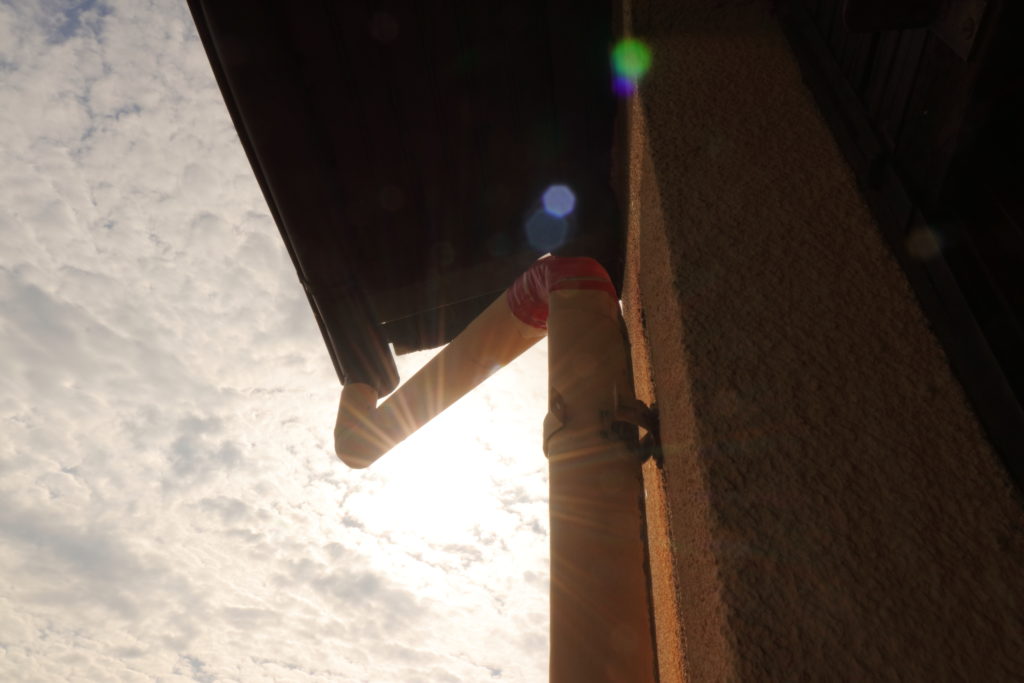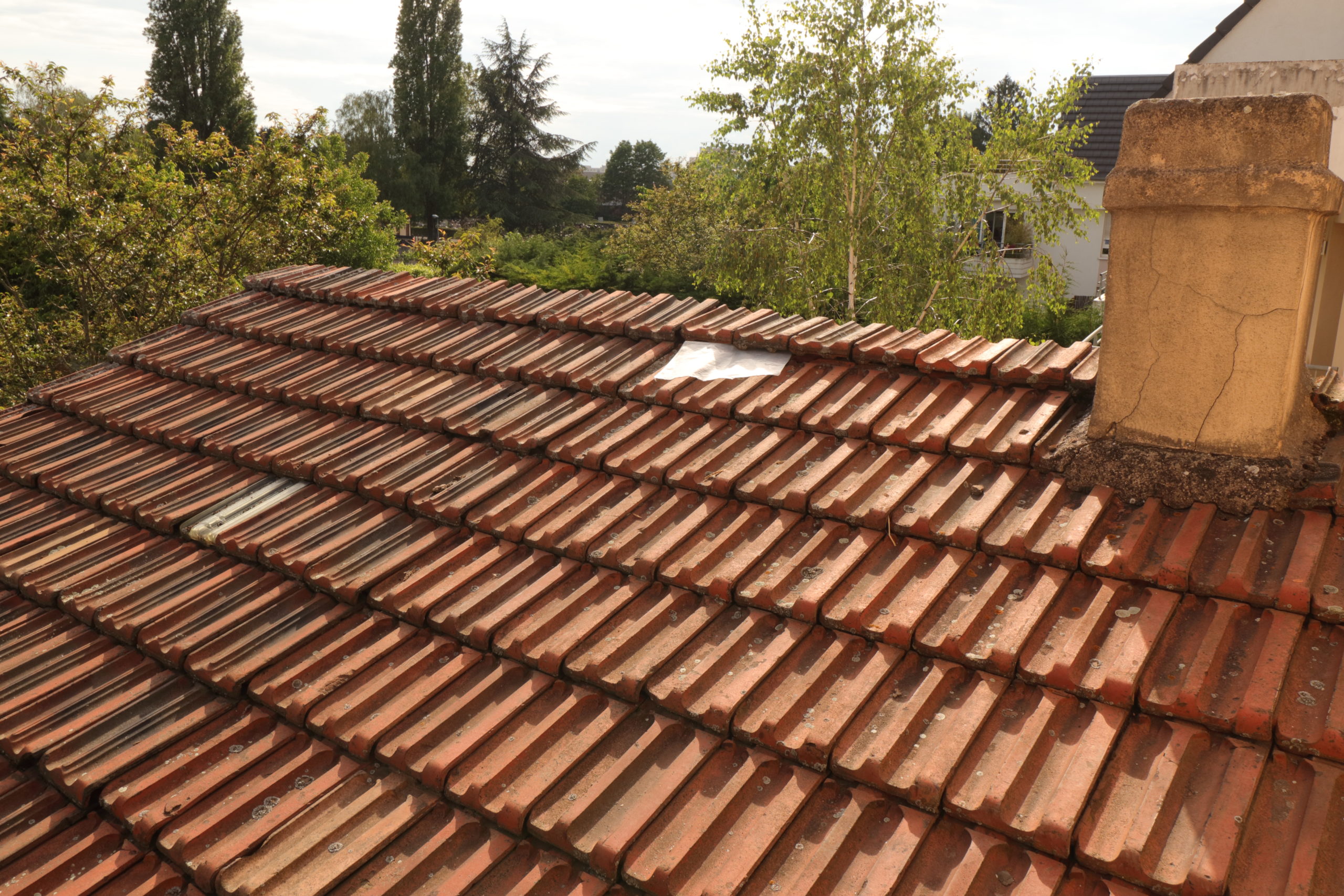 Niveau toiture, repositionnement de quelques tuiles et raccordement de la zinguerie qui était tombé depuis fort longtemps