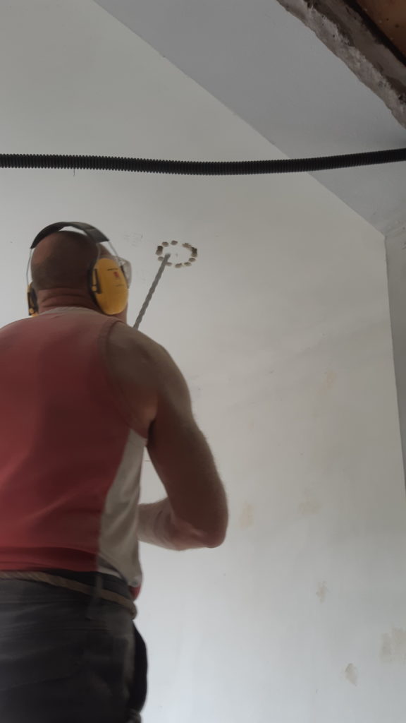 Ensuite, préparation du trou pour passer la gaine de VMC, situé au dessus de la douche