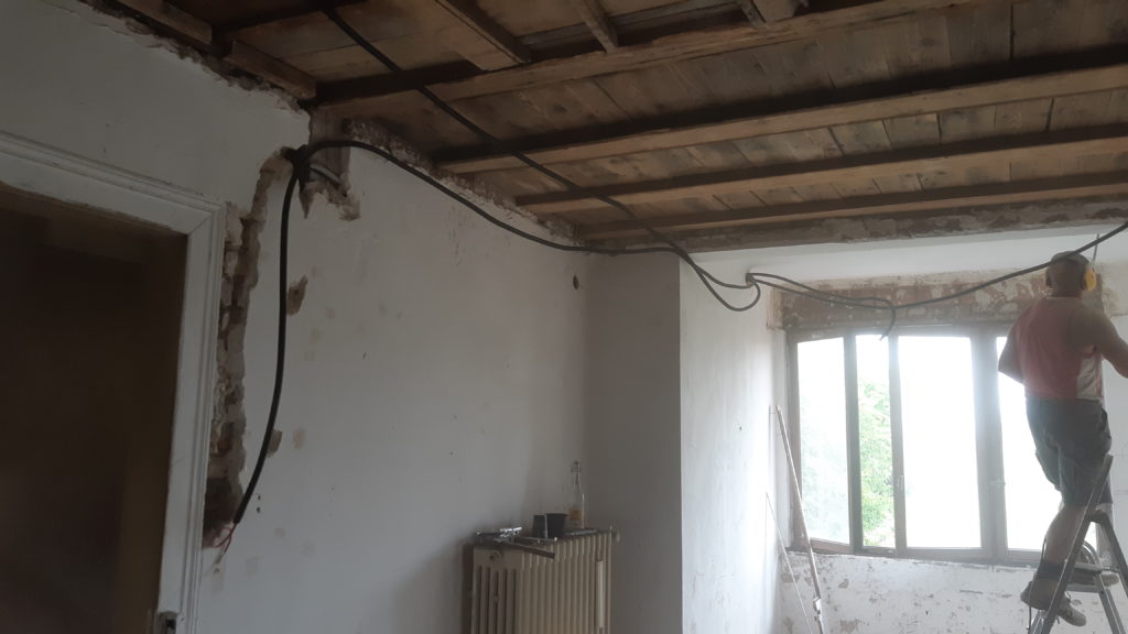 Rendez-vous chez Leroy Merlin pour bonne série d’achats. Travaux dans la chambre parentale pour passer toutes les gaines électriques pour l’éclairage :