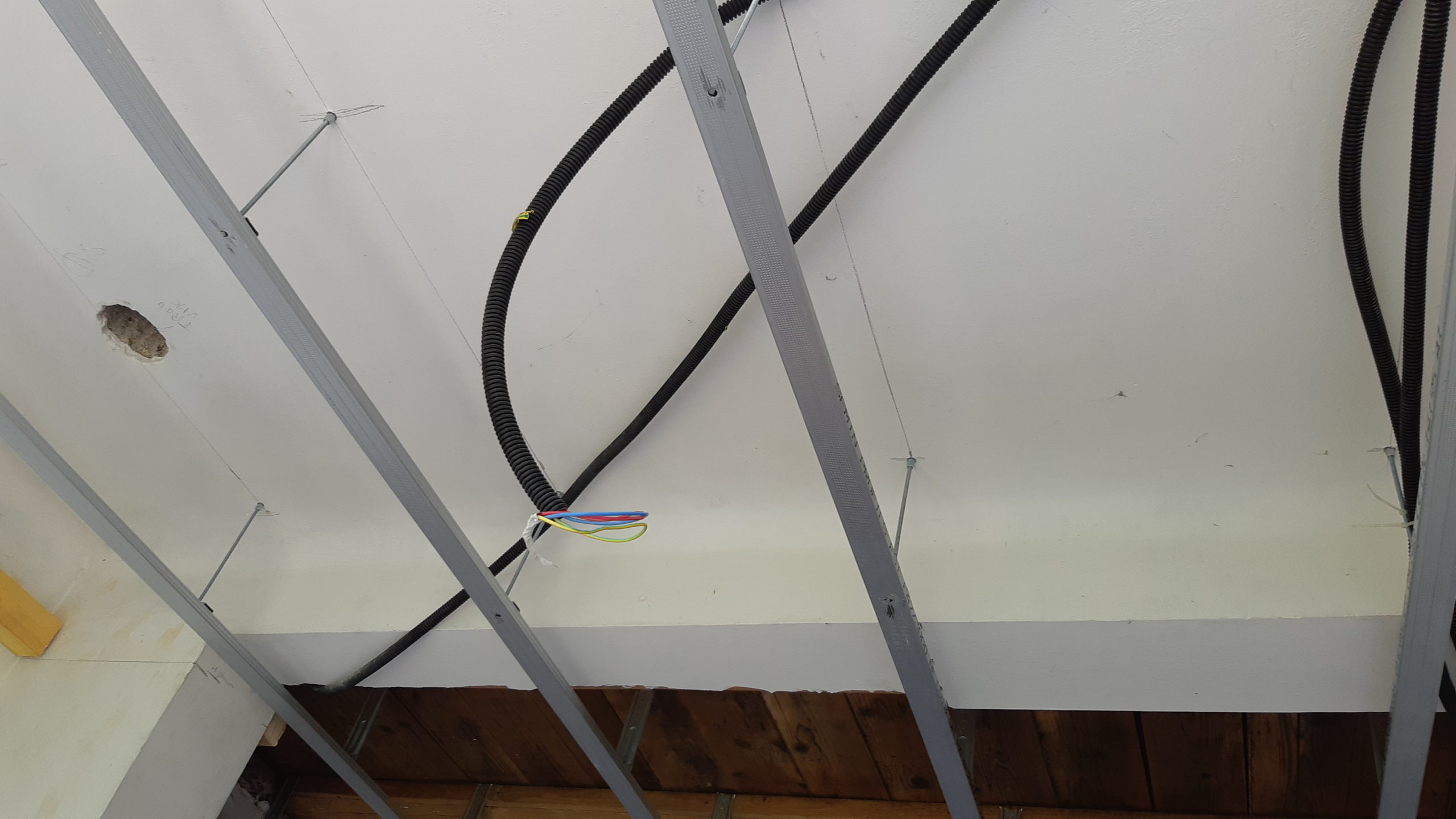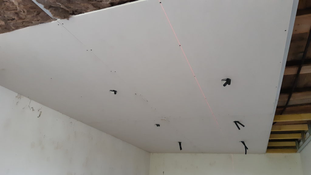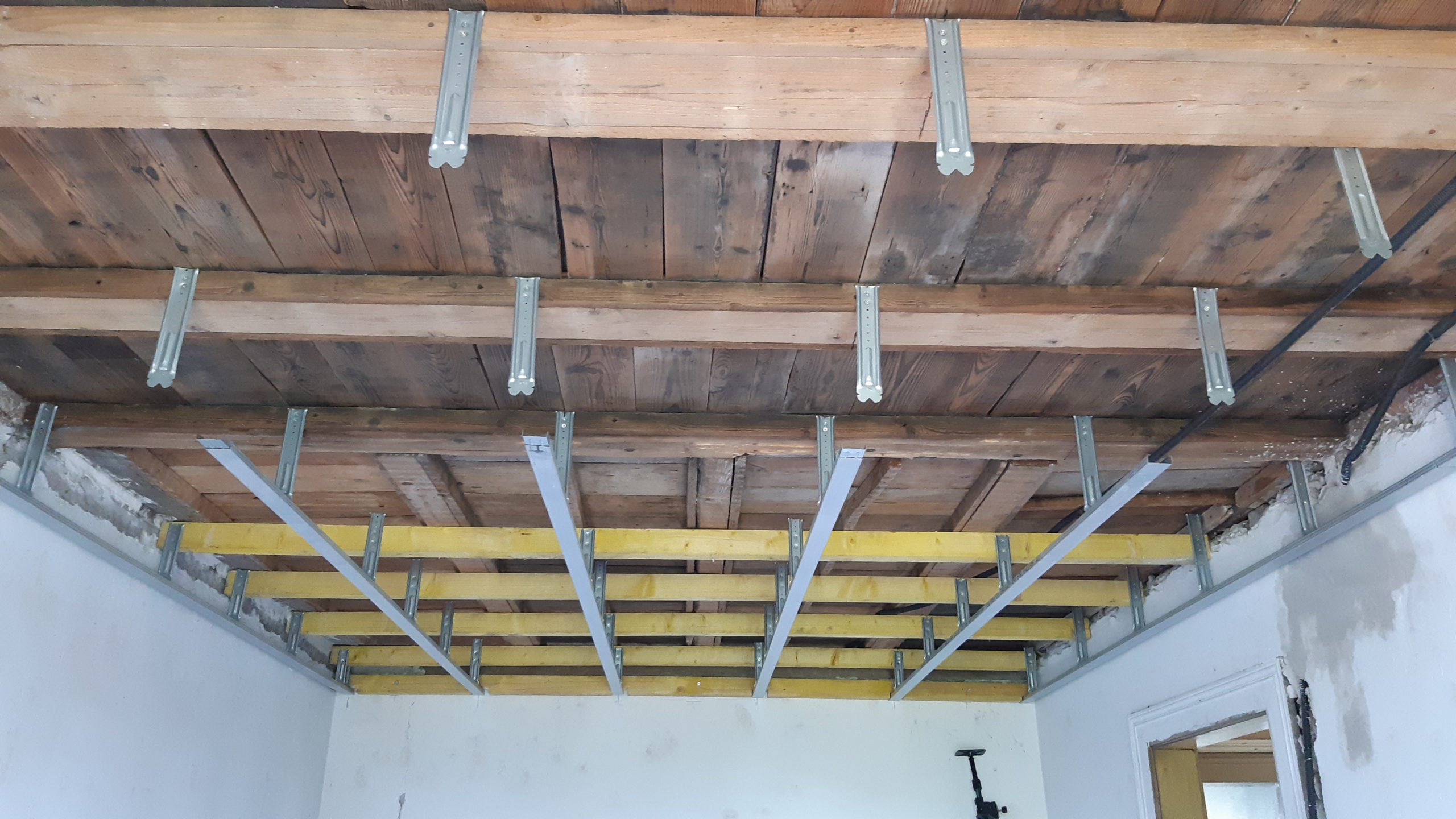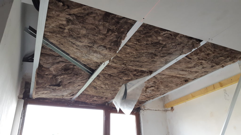 - Mise en place d’une couche de laine de vert entre le placo et le plafond en bois