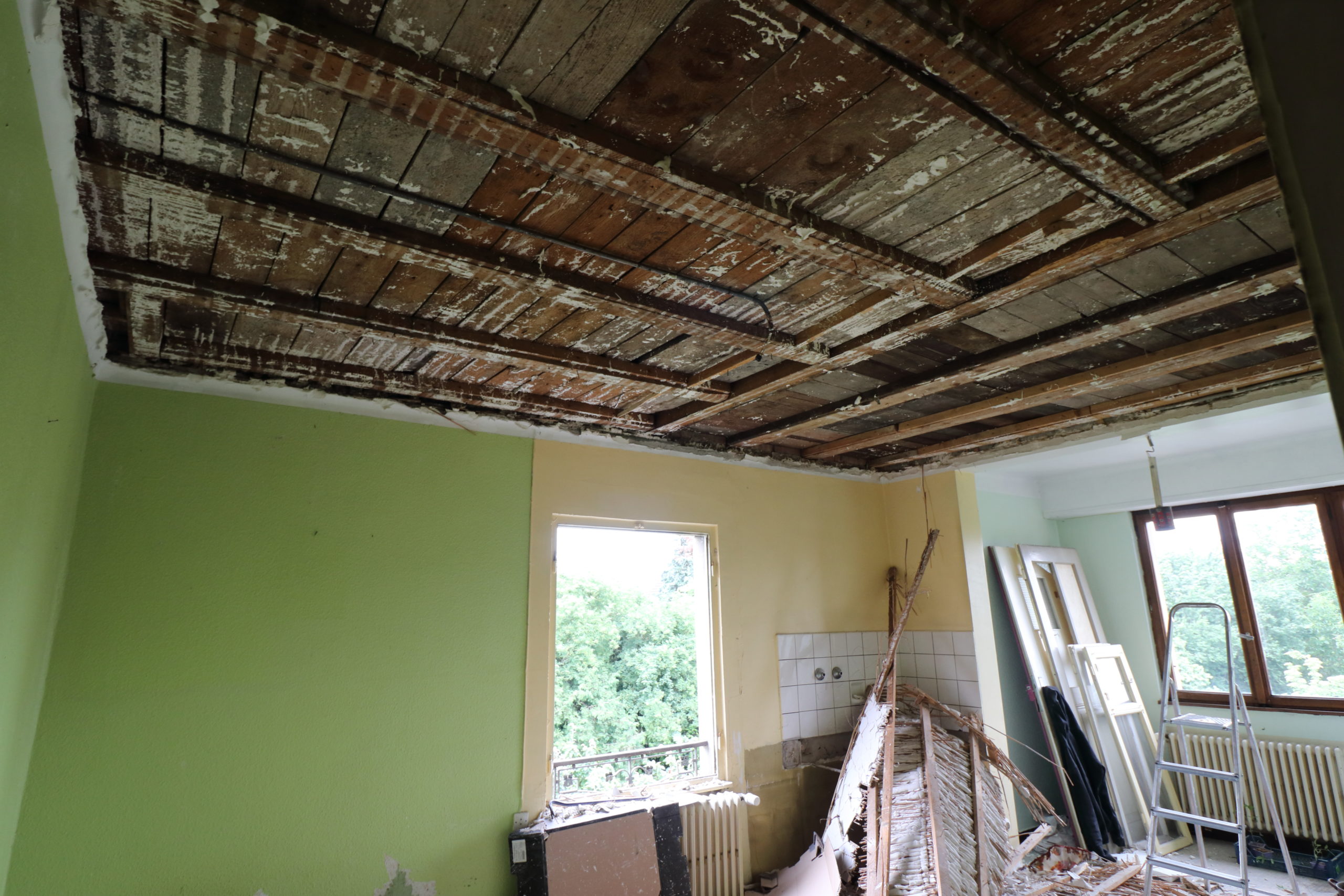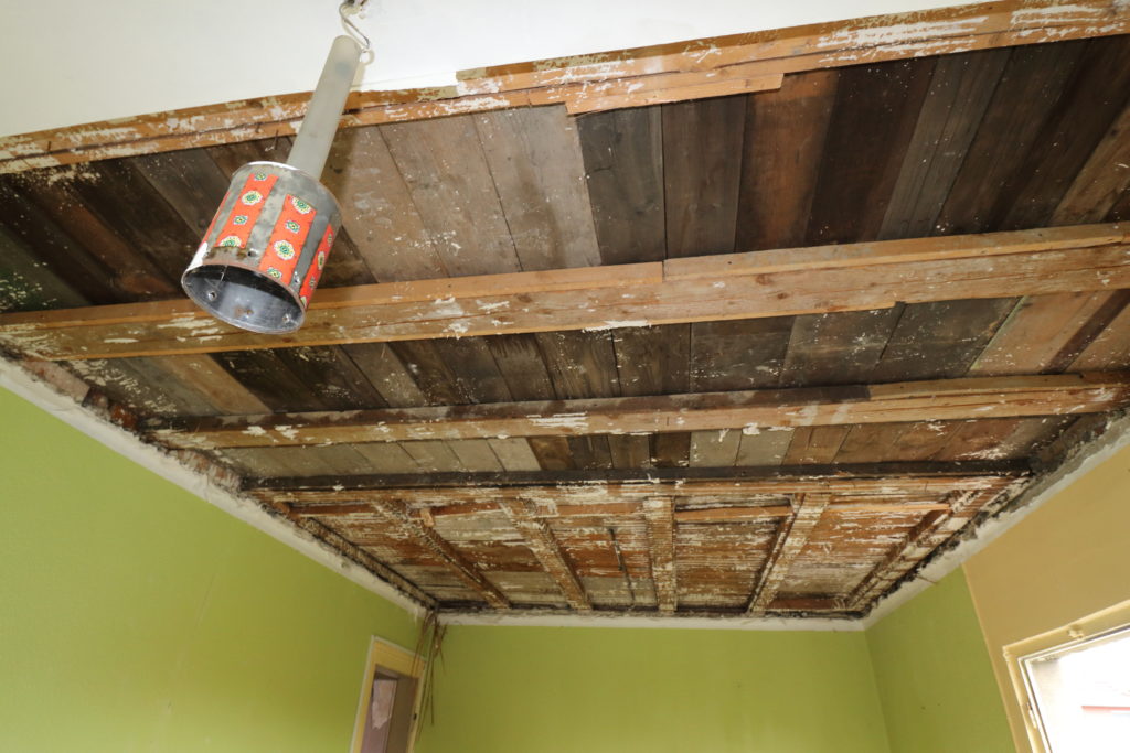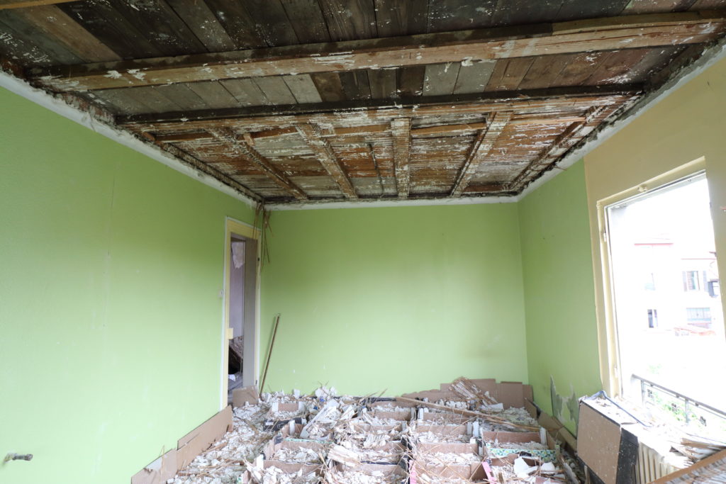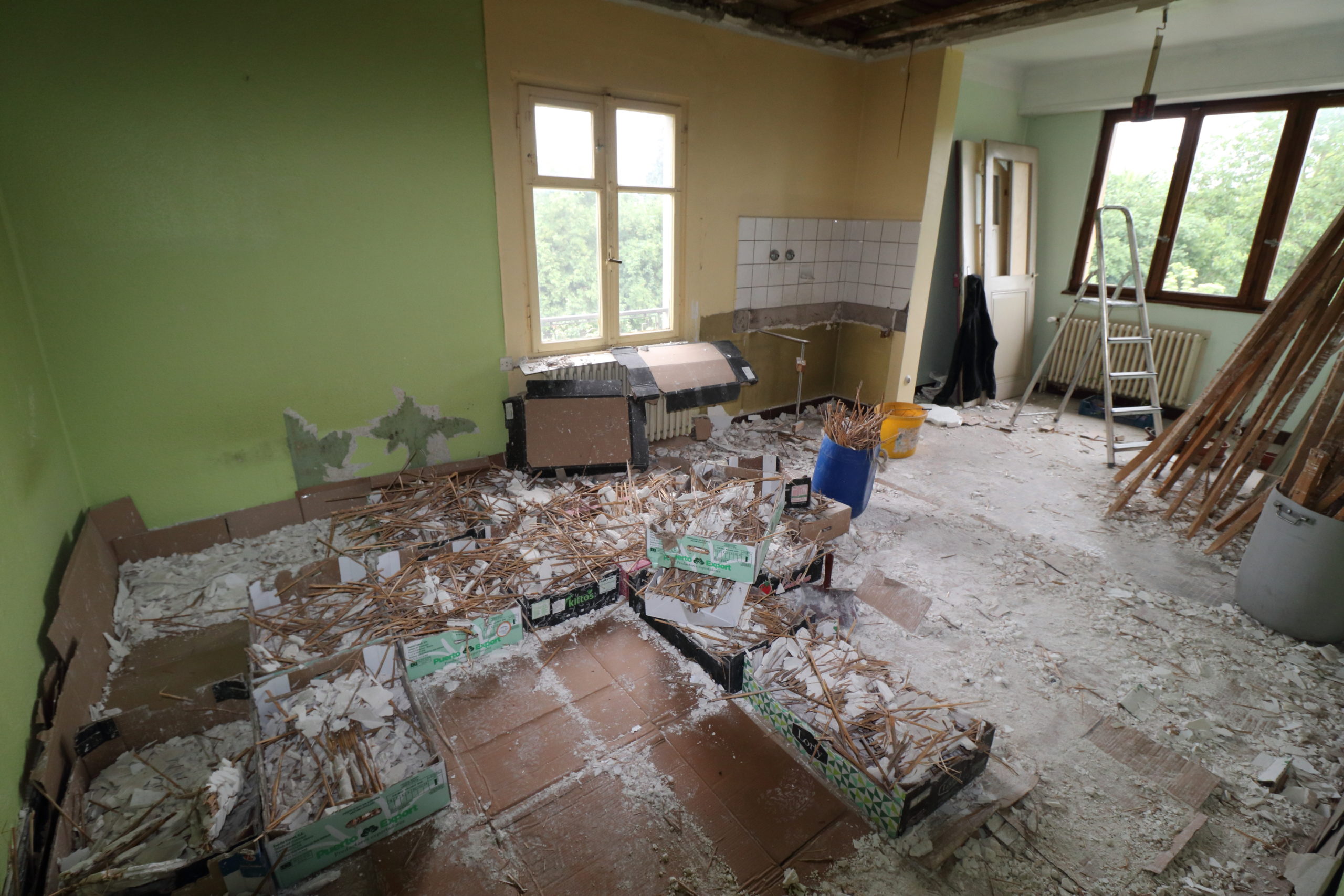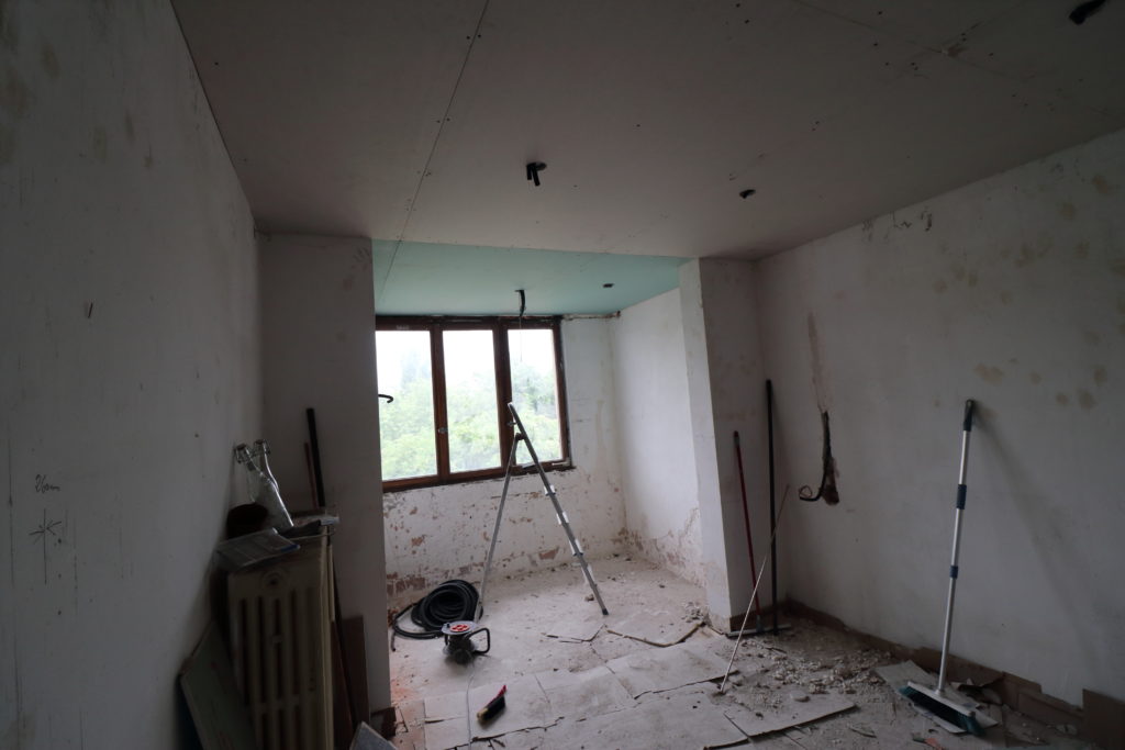 Un petit passage à la déchèterie et on commence par mise à nu du plafond du bureau et évacuation des déchets