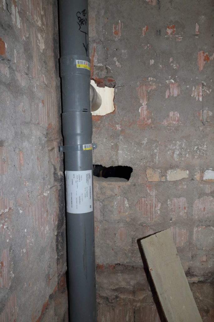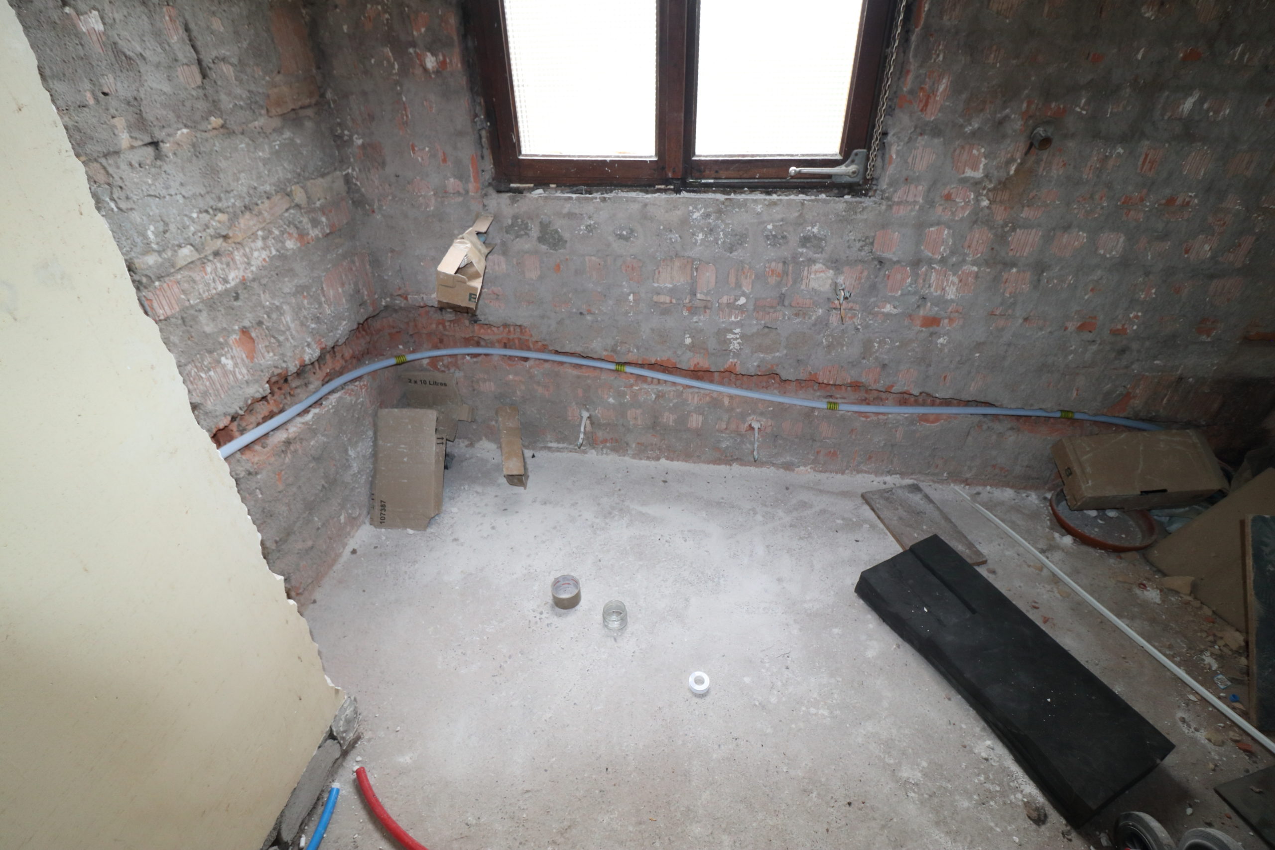 Préparation du trou pour passer les tubes d’eau chaude et froide de la douche de la chambre parentale. En bas, les tubes pour la douche et en haut, ceux pour le WC et le lavabo. Pour passer les tubes de la douche, il a fallu démolir le caisson de volet de la pièce du RDC au sud-ouest. Réparation du volet au passage qui n’était plus manœuvrable.