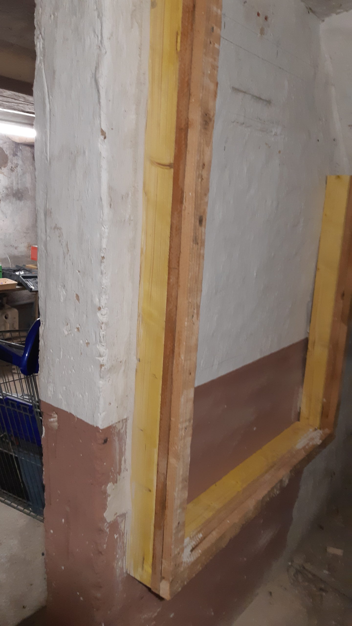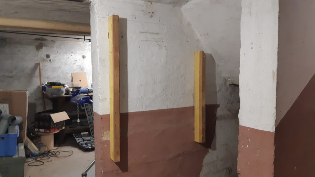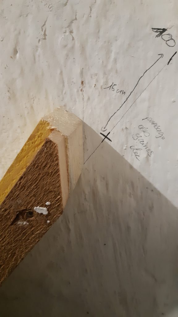 Ca y est le cadre du tableau électrique, compteur d’abonné et coffret multimédia est fait. Ne reste plus qu’à mettre une plaque de placo pour l’habiller et poser le tableau. Fait en tasseau de sapin avec une réhausse réalisée avec les lattes des plafonds des autres pièces. Vu que le mur est assez irrégulier, deux petites gâchées de plâtre pour boucher les trous. Un petit coup de propre est voila le travail :