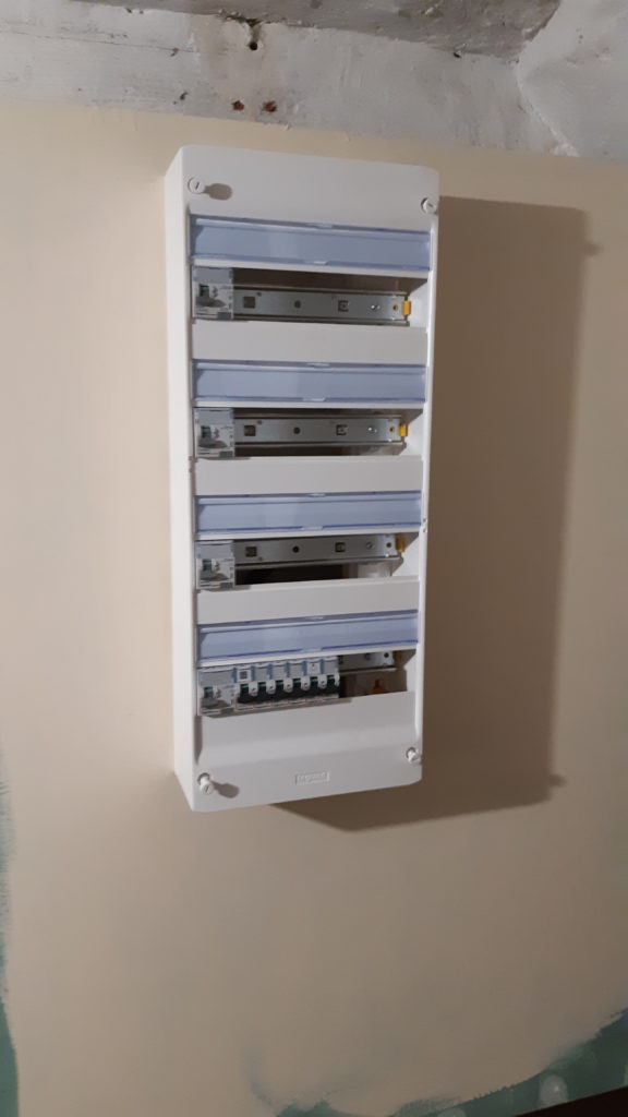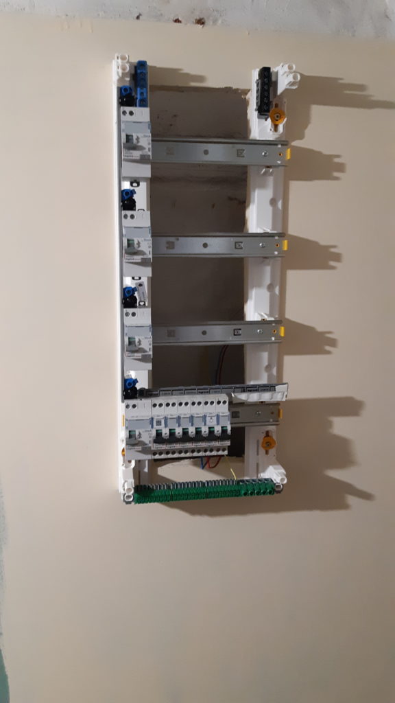 Mise en place du tableau électrique et premier raccordement du circuit le lumière de l’étage