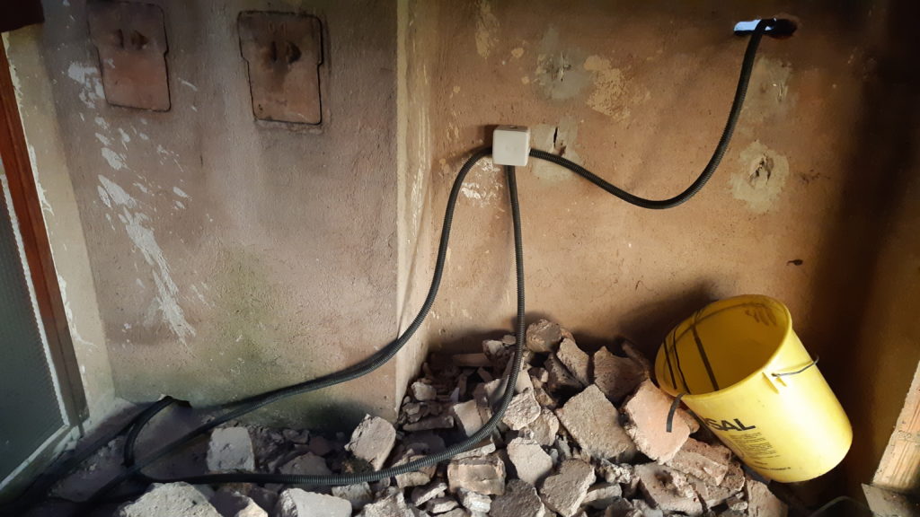 - Tirage de la gaine pour relier la boite de dérivation au tableau électrique